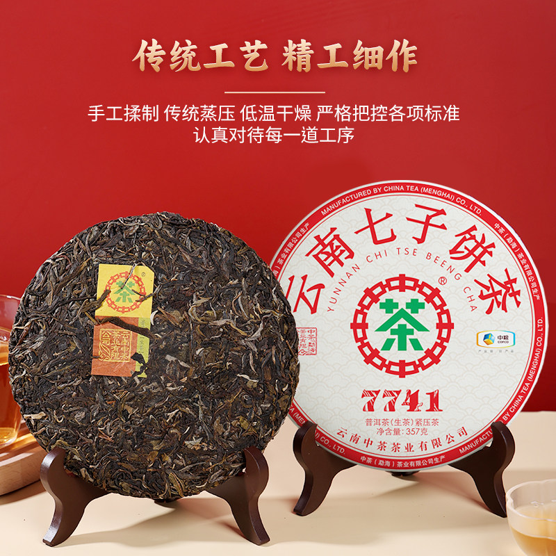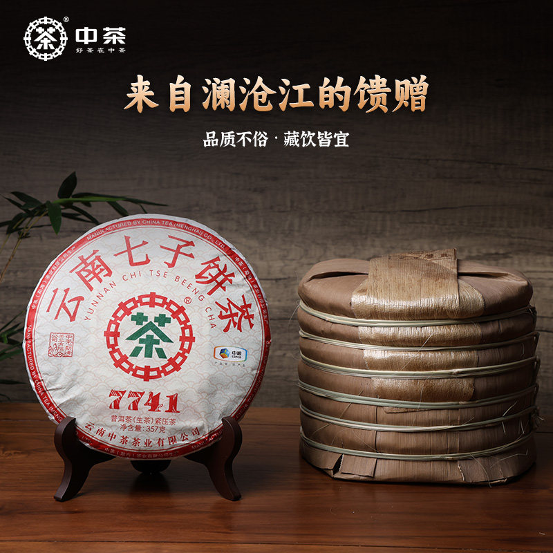 秒杀 中茶云南七子饼茶7741普洱生茶357g茶饼官方旗舰店口粮茶