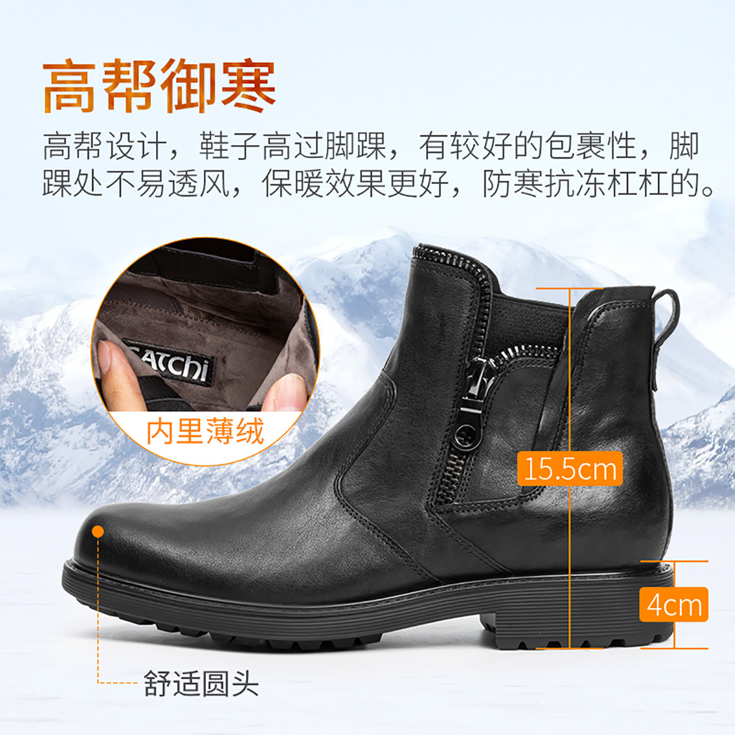 牛皮棉鞋 沙驰冬季 马丁靴男款 加绒加厚保暖皮鞋 男鞋 男靴切尔西男士