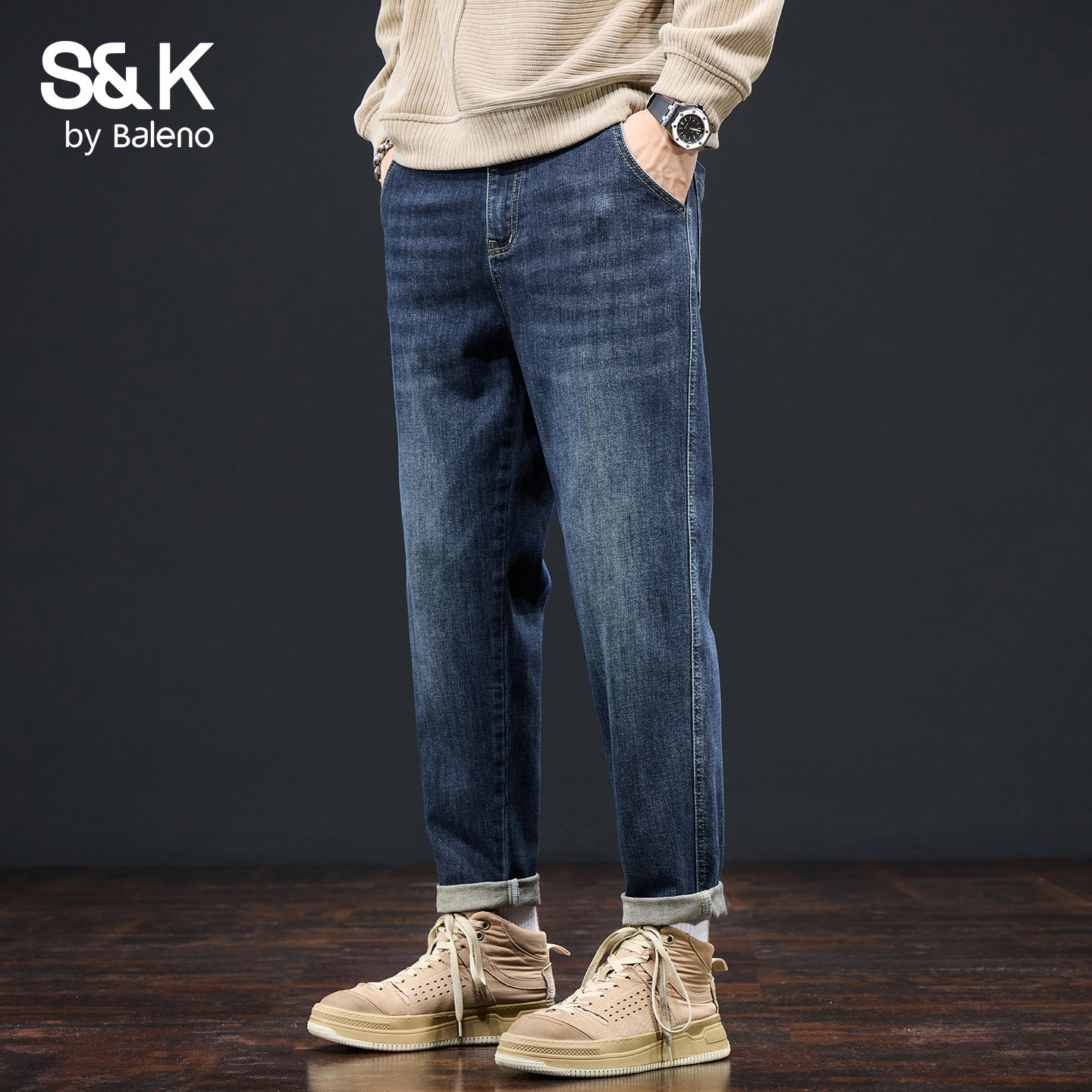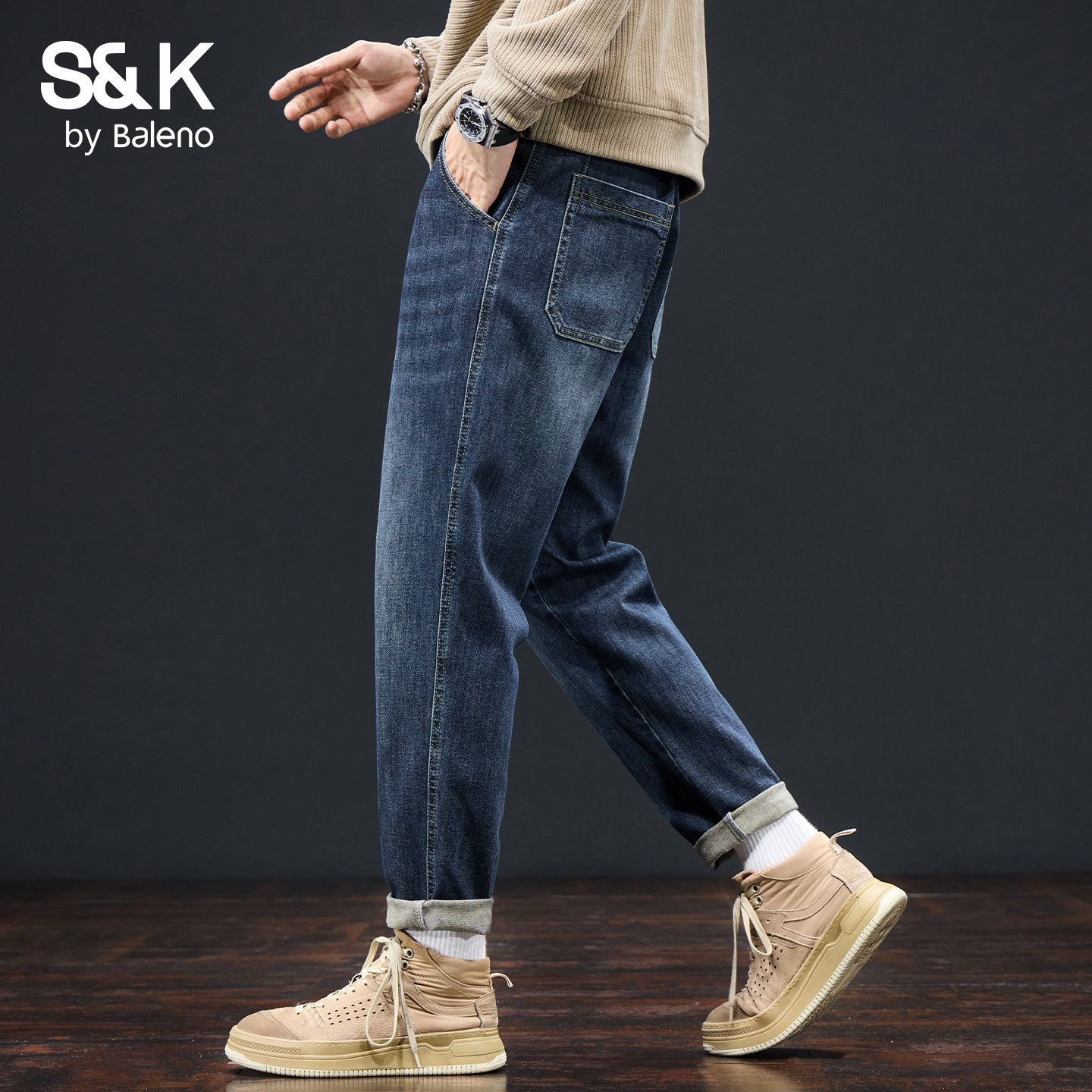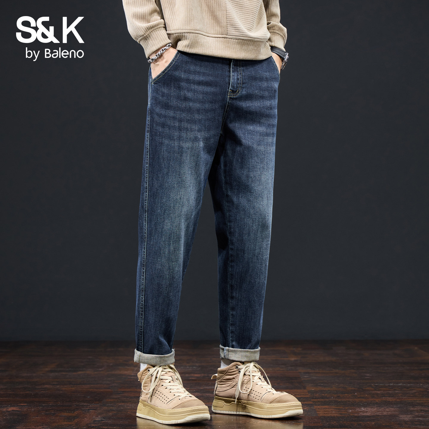 班尼路SK复古水洗牛仔裤 子男YS 直筒宽松青年休闲裤 男2025秋季 厚款