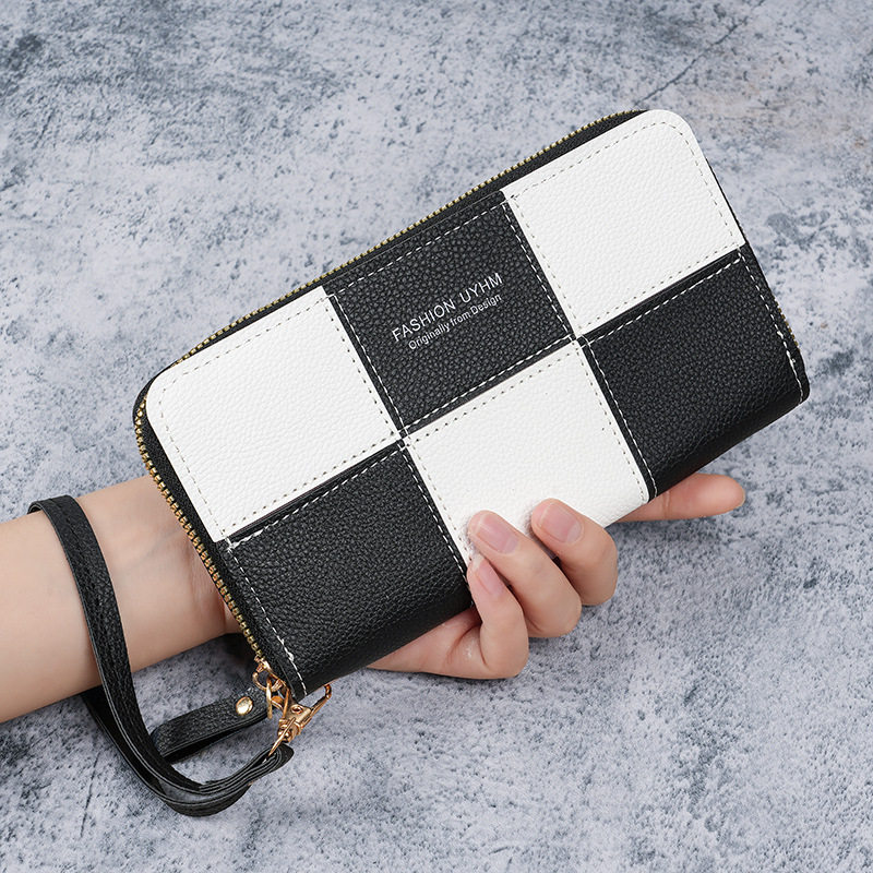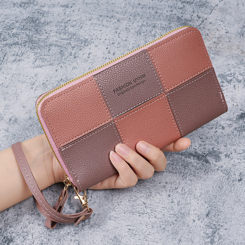 新款 拼接大容量拉链钱夹手机包软皮夹 时尚 女士钱包长款 手拿包韩版