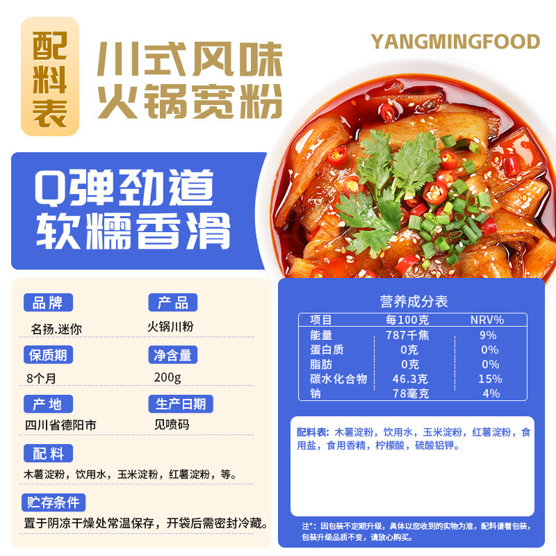 名扬迷你川粉火锅美味搭档红薯粉火锅食材200g5袋装 麻辣冷锅串串 商品标签: 发布时间:2026年02月08日 市 场 价:15.8 元 折 扣 价:19.8 元 所 在 地:四川 成都 店铺掌柜:名扬食品官方店 去购买>> 下架了的话点我重新搜索 本站来源:淘宝(www.xiuda.net)购物与天猫(www.tianmaocn.com)是一个知名的电商平台,淘宝同时您也可以访问(www.taobao.lc)来发现更多精彩的购物选择天猫(www.tmall.lc)。