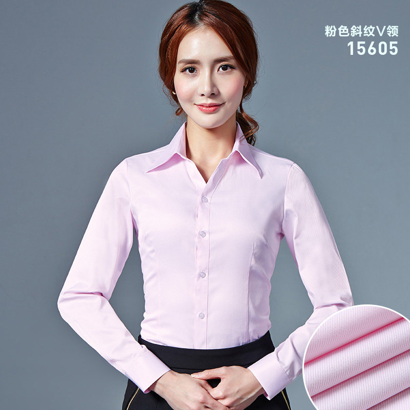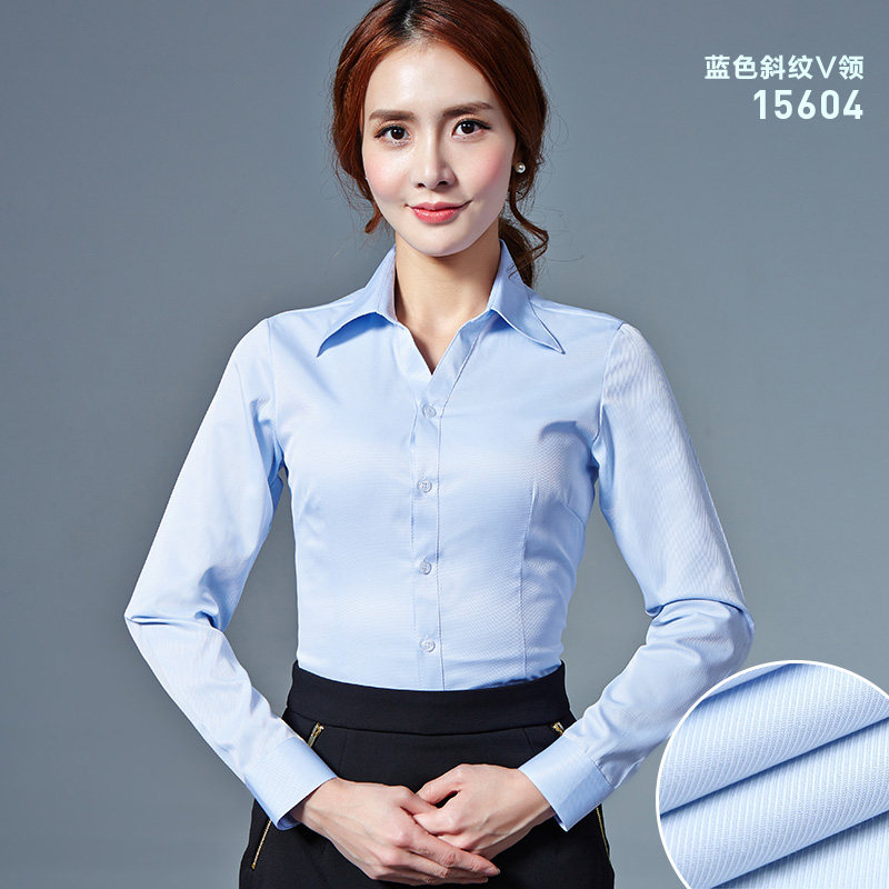 2019新春夏白衬衫 白色衬衣 韩国修身 版 女长袖 工作服V领职业工装