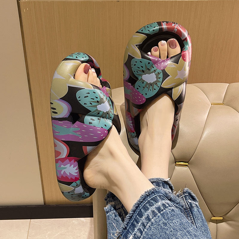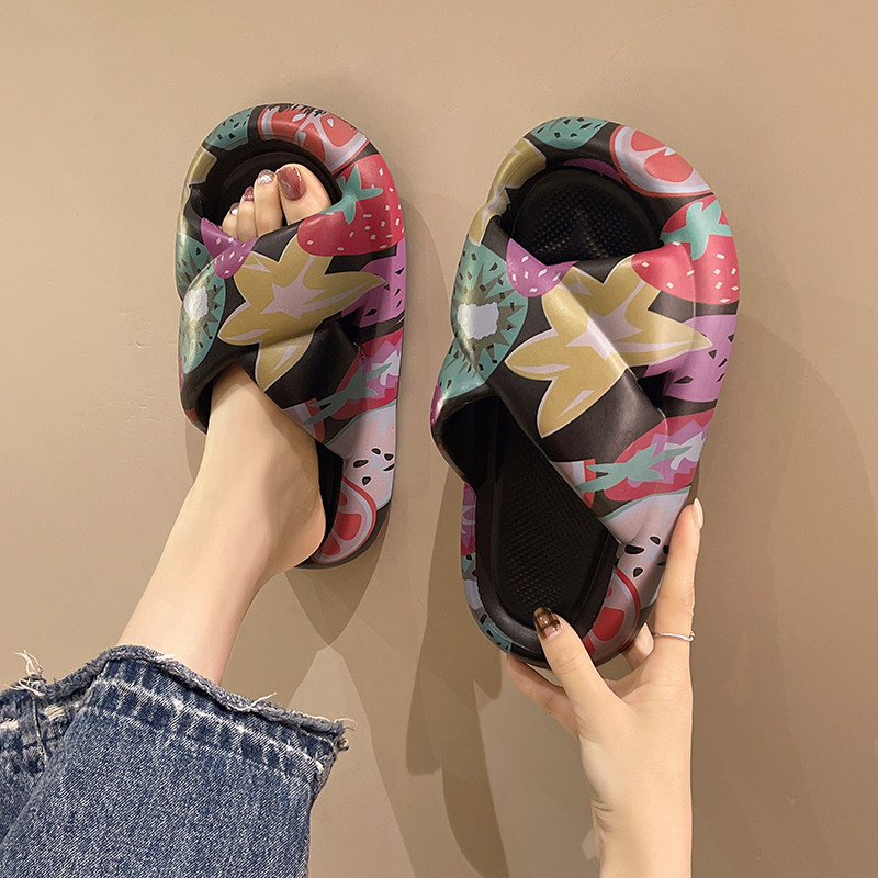 花朵印花交叉拖鞋 女夏季 2025新款 时尚 外穿厚底防滑室内居家凉拖鞋