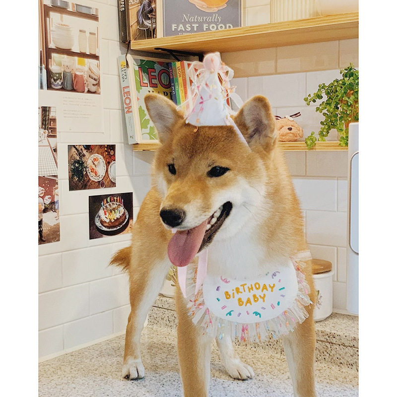 PanParty韩国狗狗猫咪生日派对围兜宠物口水巾三角巾猫咪狗生日帽