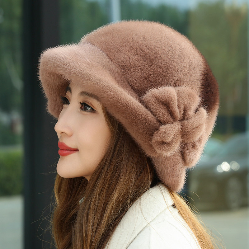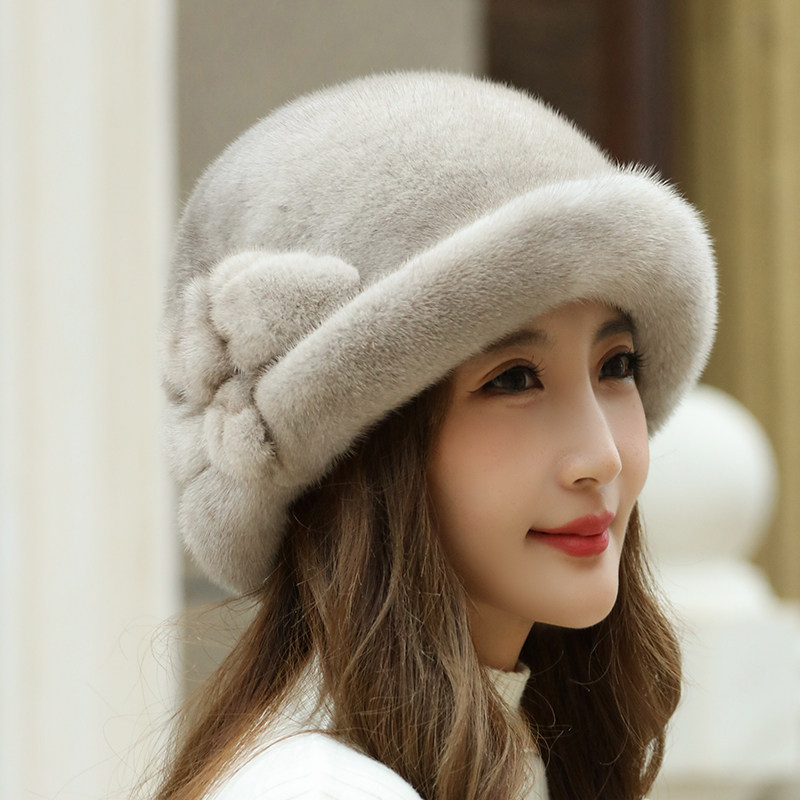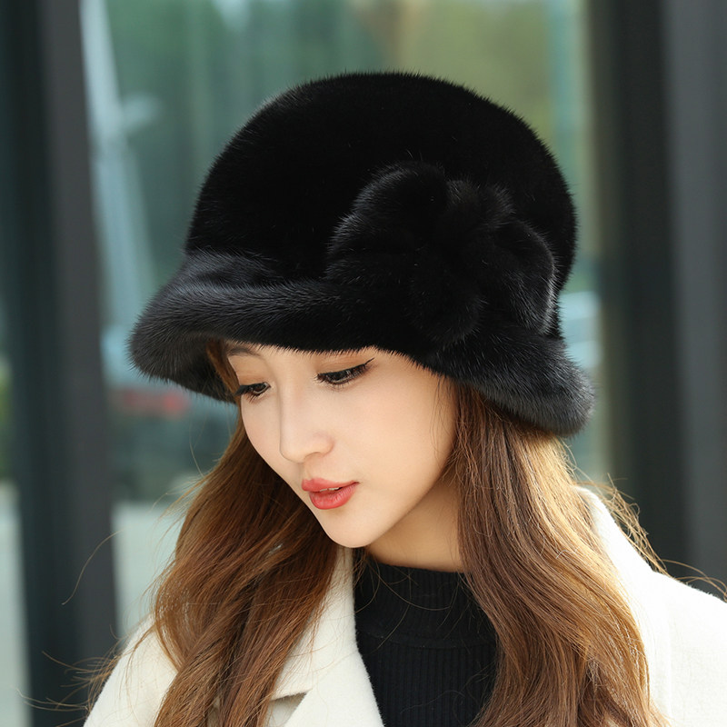 水貂皮帽子女士冬季 中老年整貂毛护耳冬天时尚 貂绒保暖大花皮草帽