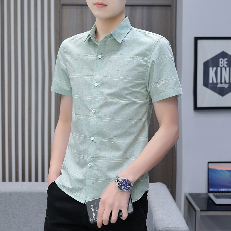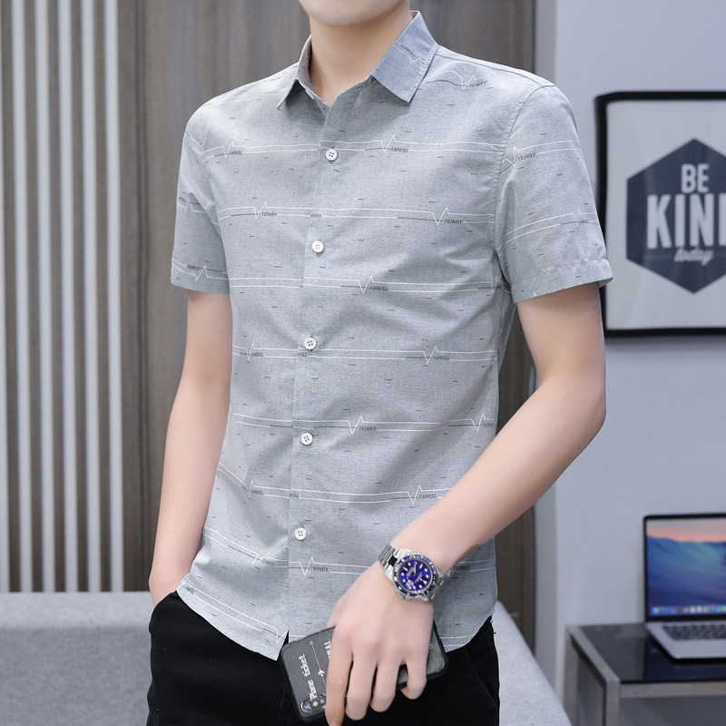 衬衣服 男短袖 新款 夏季 百搭个性 衬衫 潮流修身 男装 韩版 印花免烫薄款