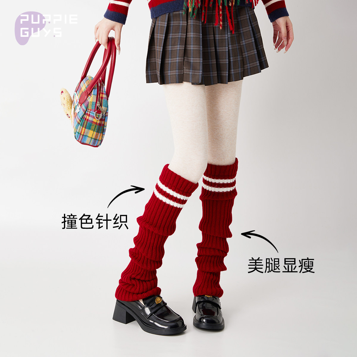 purpleguys红色袜套女秋冬学院风针织过膝y2k保暖新年堆堆小腿套