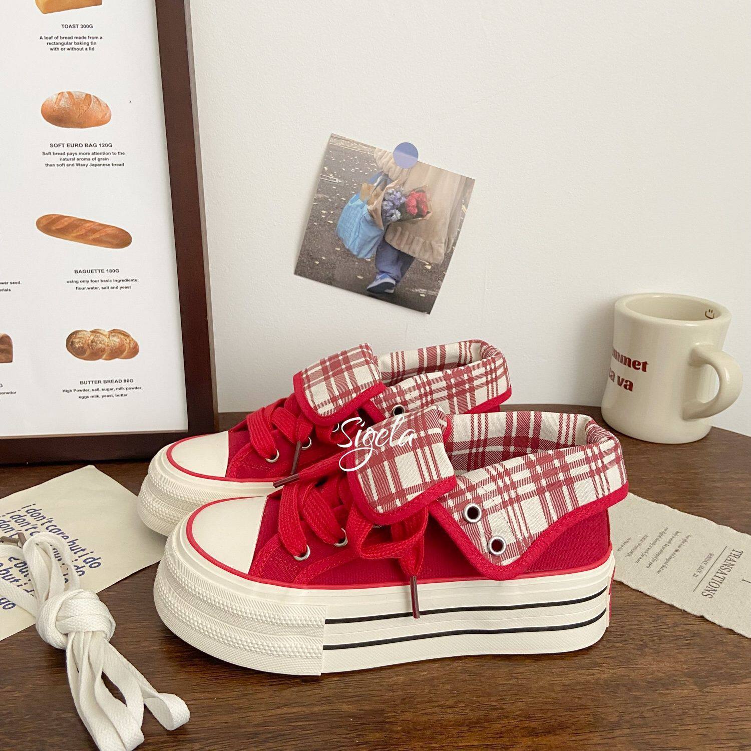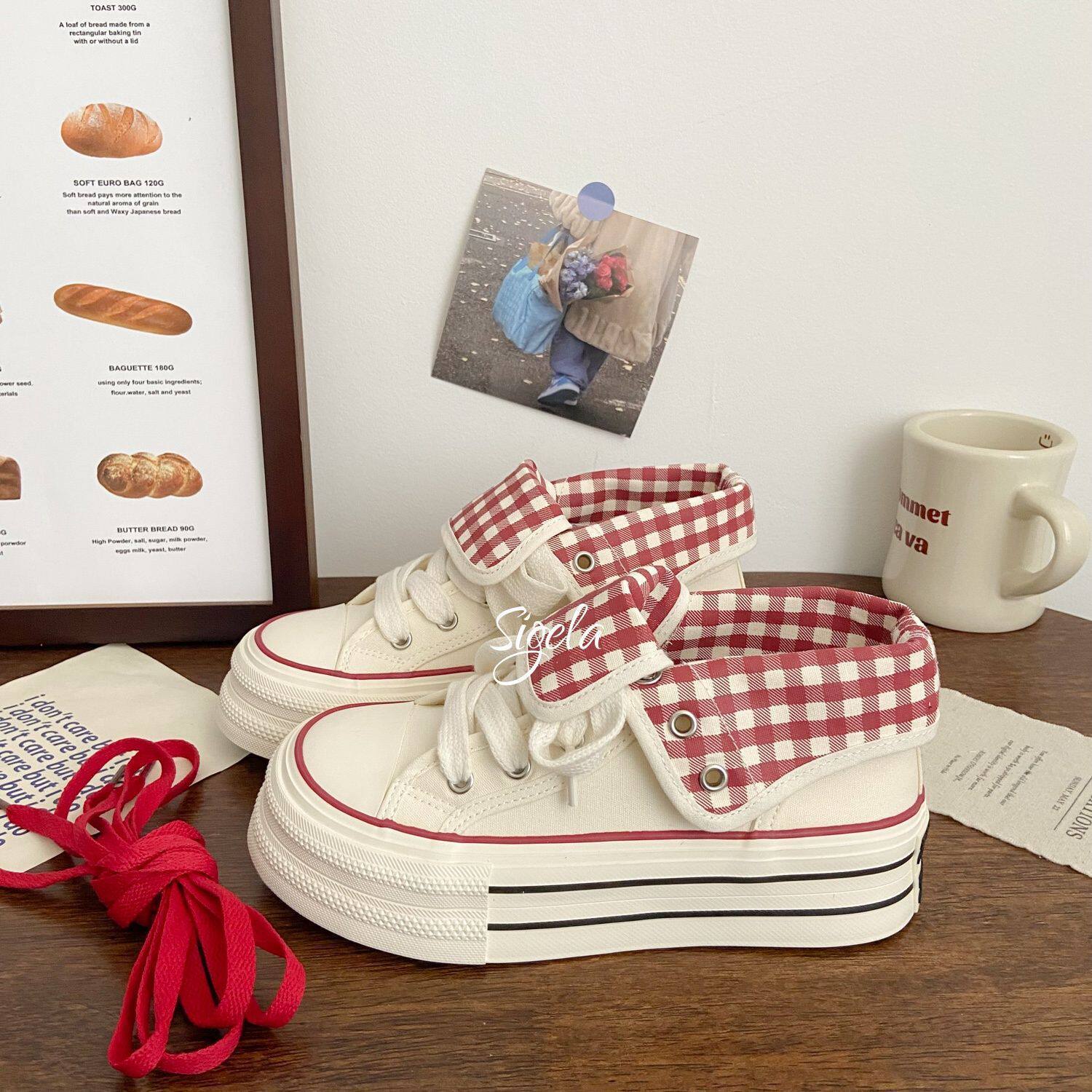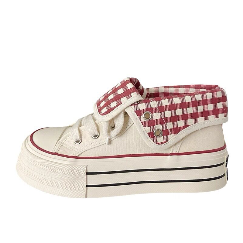 子女2025秋季 新款 格子设计感chic韩版 原创厚底高帮帆布鞋 小白鞋 潮