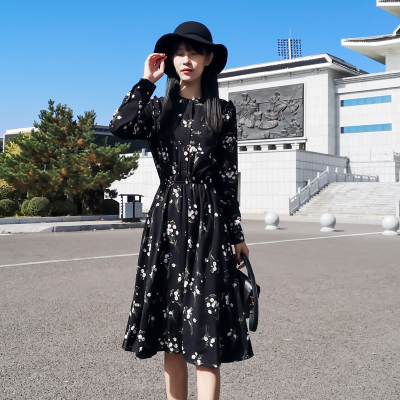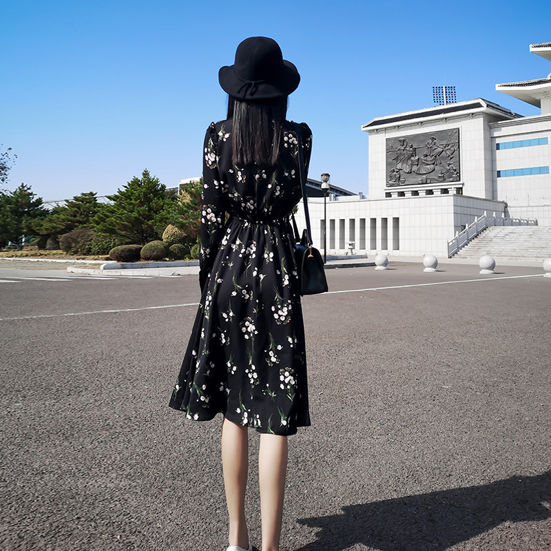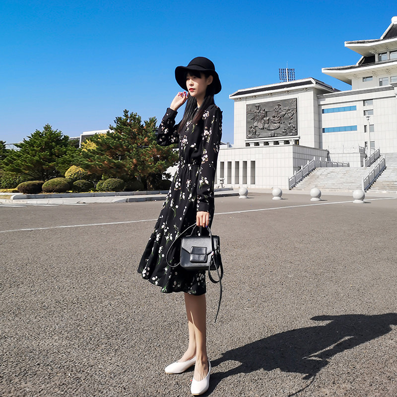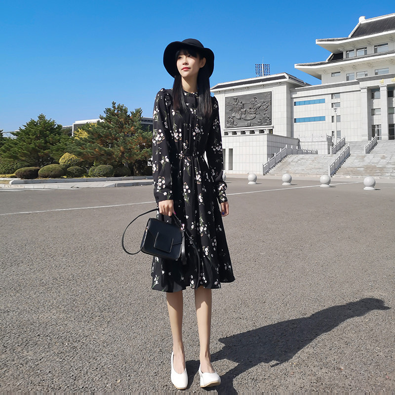 春夏韩版 复古碎花连衣裙女装 2020年新款 收腰显瘦雪纺小个子中长裙