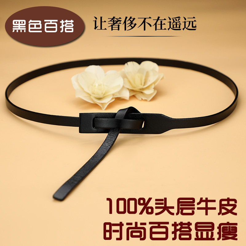 腰带女真皮头层纯牛皮黑色百搭装 饰腰链配裙子大衣收腰打结细皮带