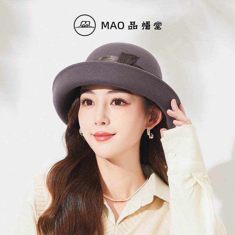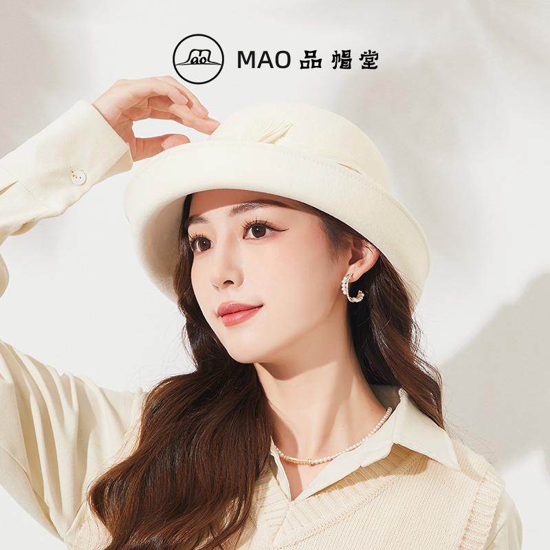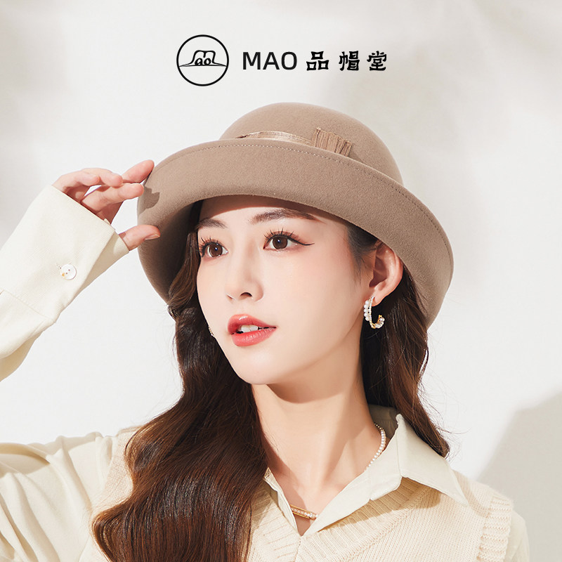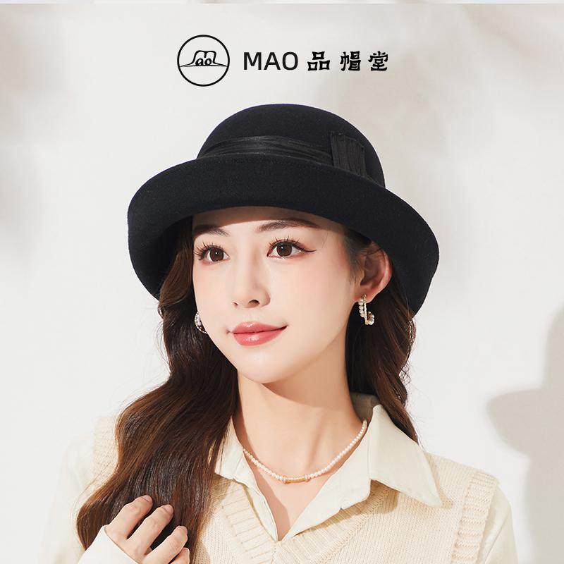 时尚 MAO品帽堂 优雅麻纱羊毛毡帽子女士秋冬新款 英伦卷边气质礼帽