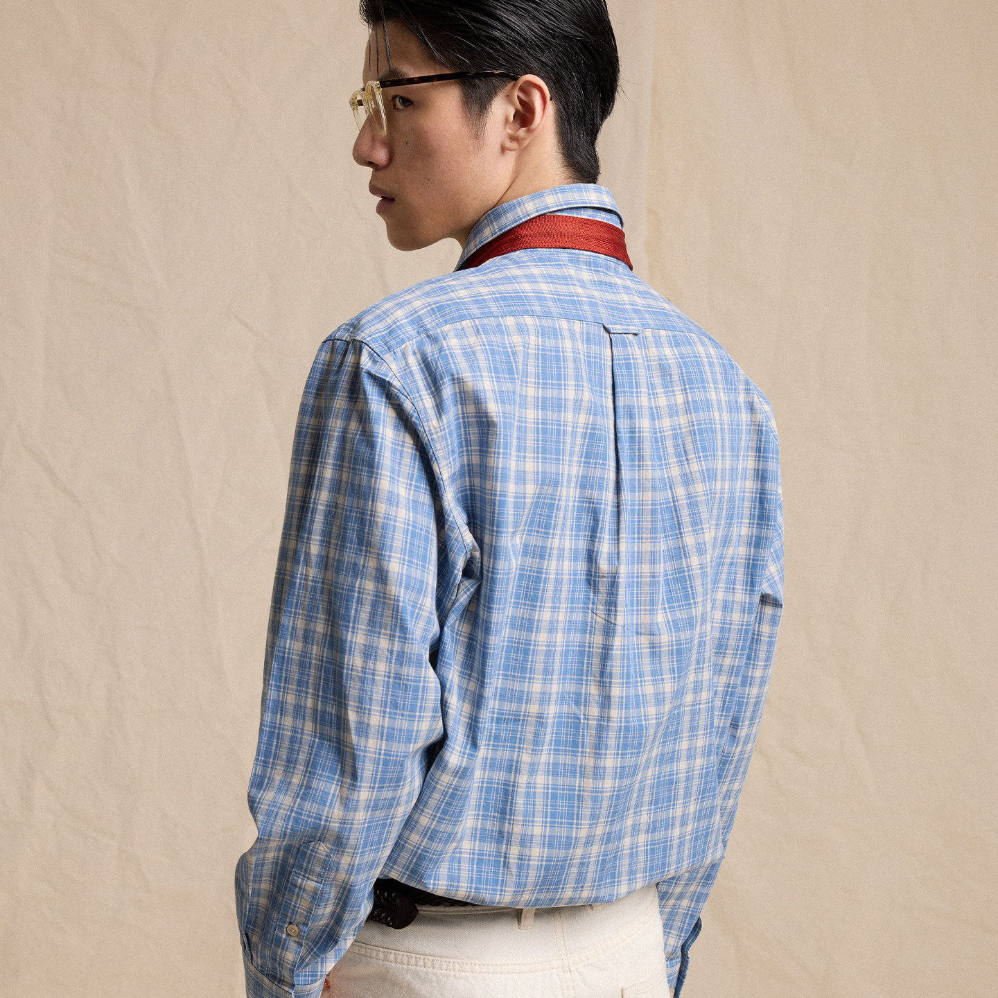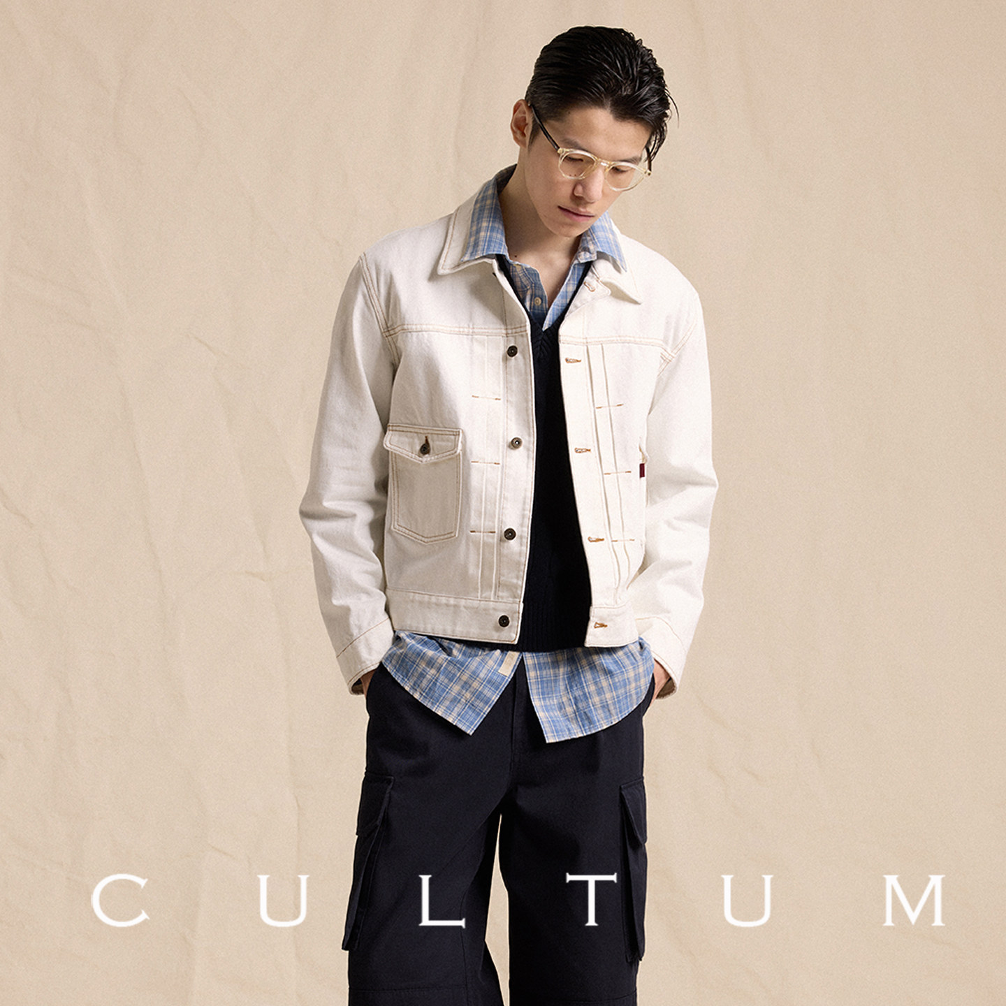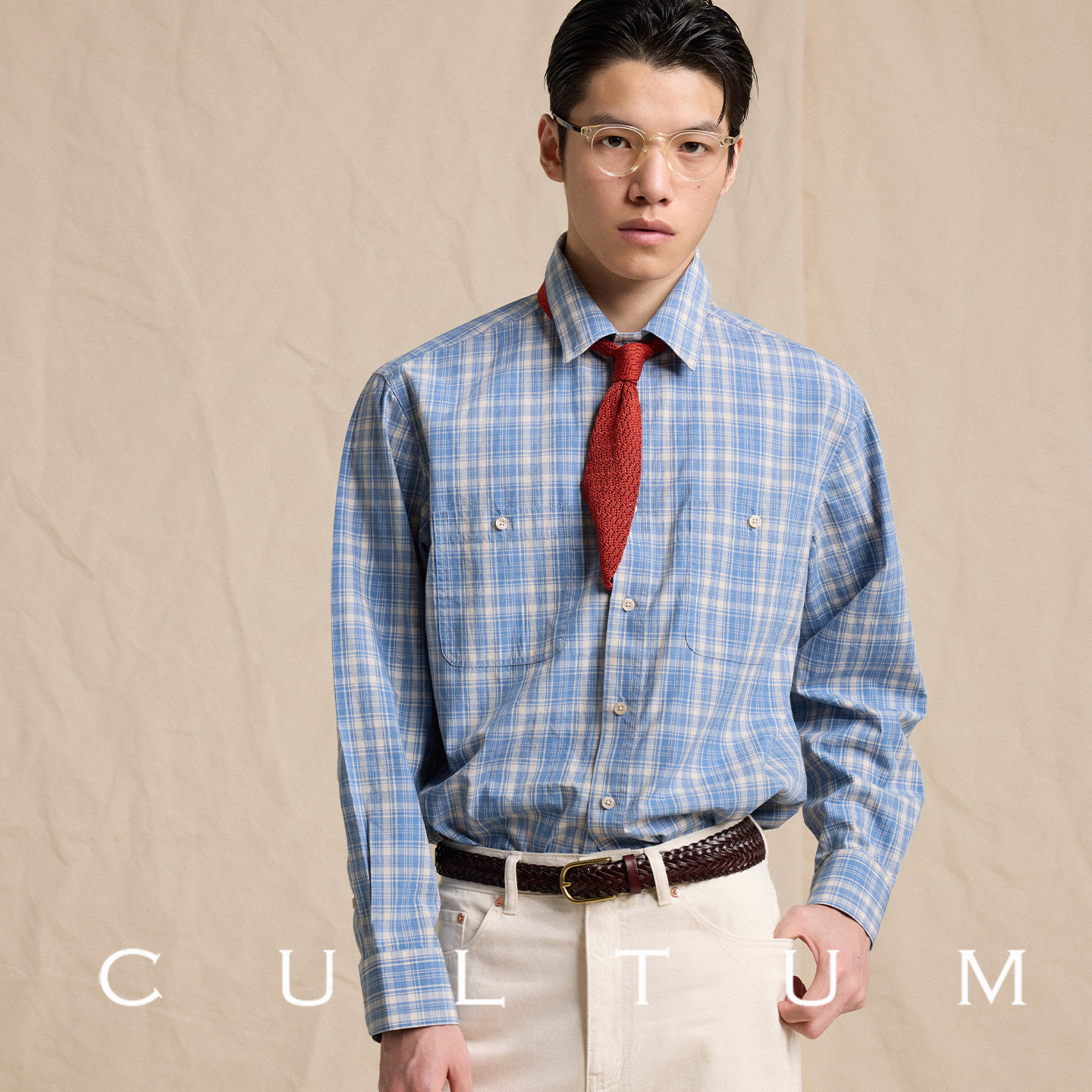 100%新疆棉 CULTUM日系工装 口袋格纹衬衫 男长袖 复古学院风衬衣