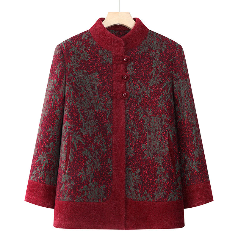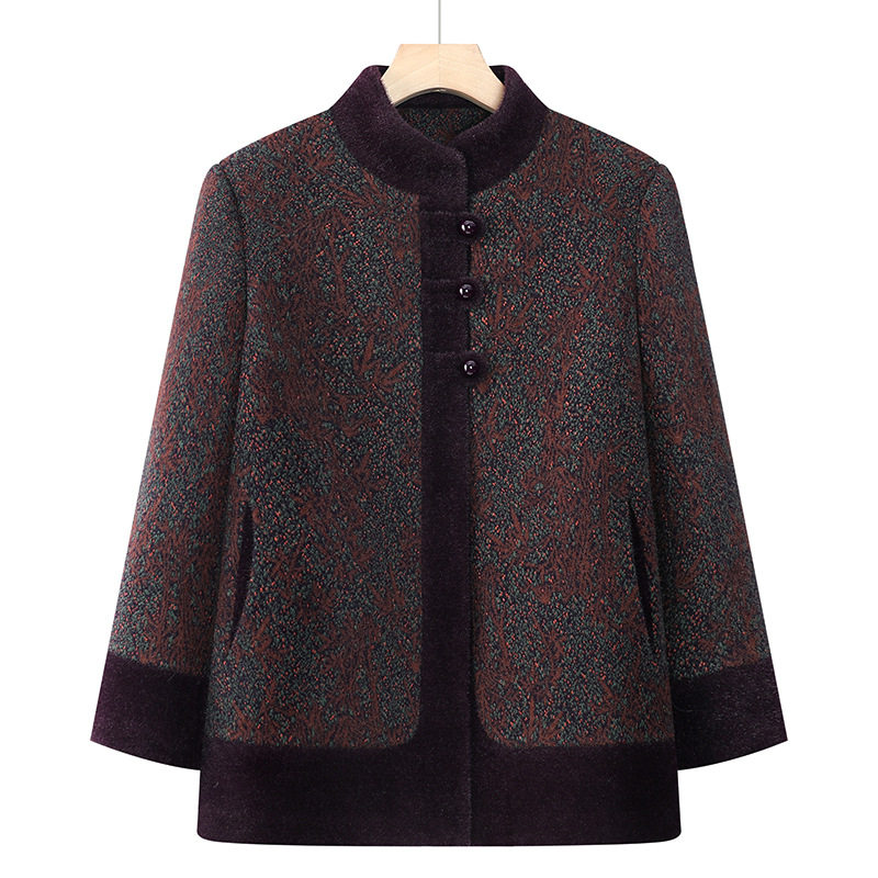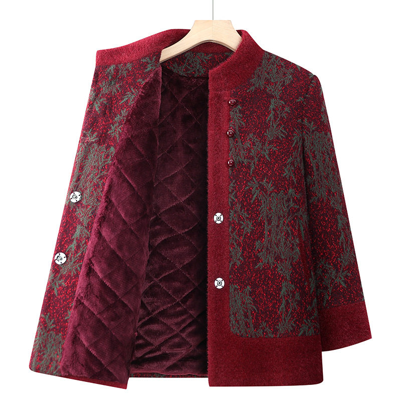 加绒加厚外套中老年女立领上衣气质妈妈冬装 恒源祥新款 奶奶冬季 保