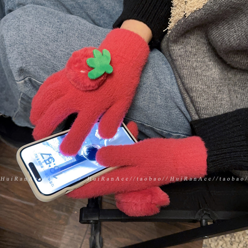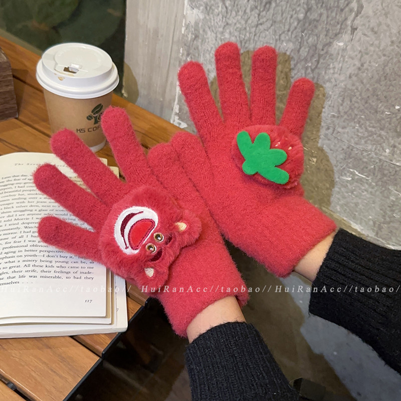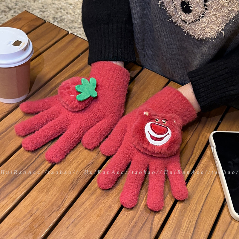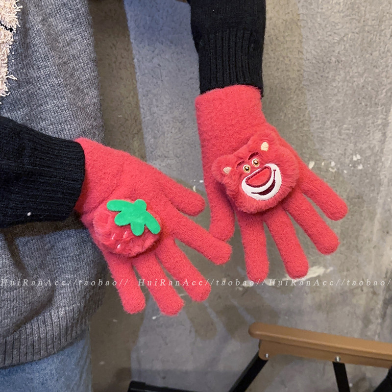 加绒加厚2026新款 正版 授权草莓熊手套女冬季 学生户外骑行保暖防寒
