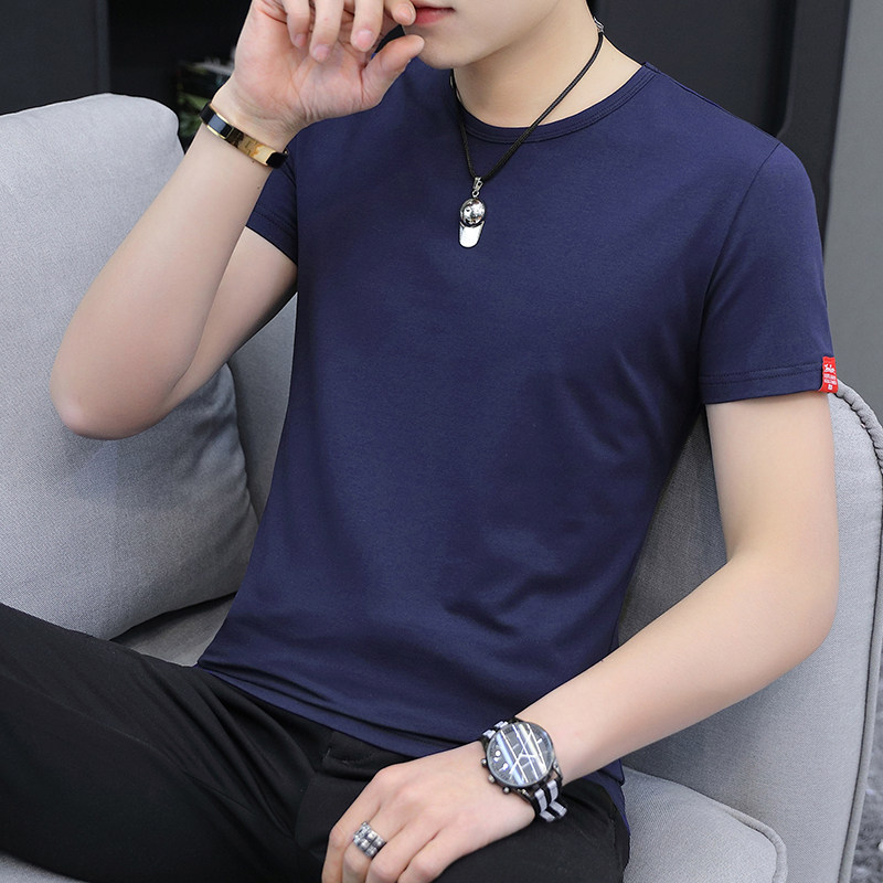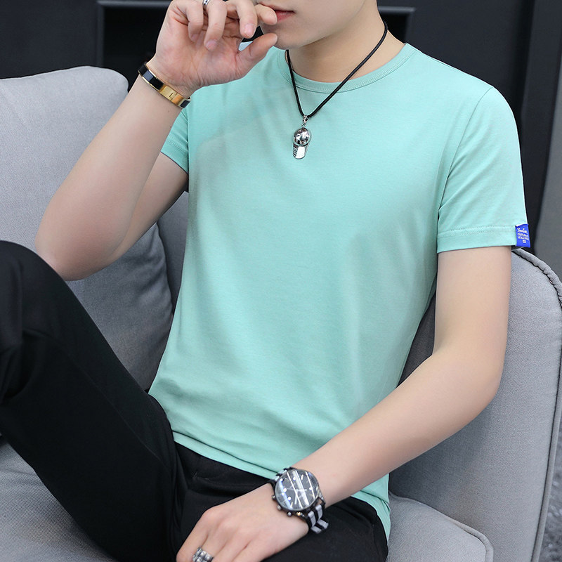 短袖 圆领棉感白色打底体恤衫 T恤夏季 男士 韩版 修身 冰丝百搭半袖 男