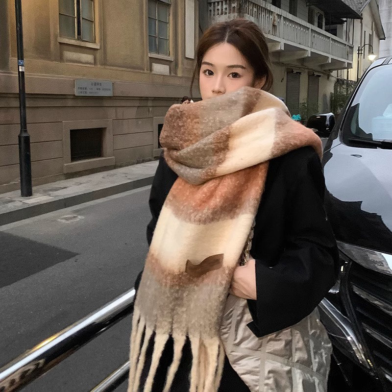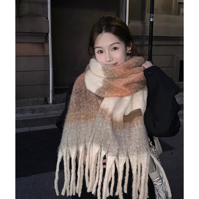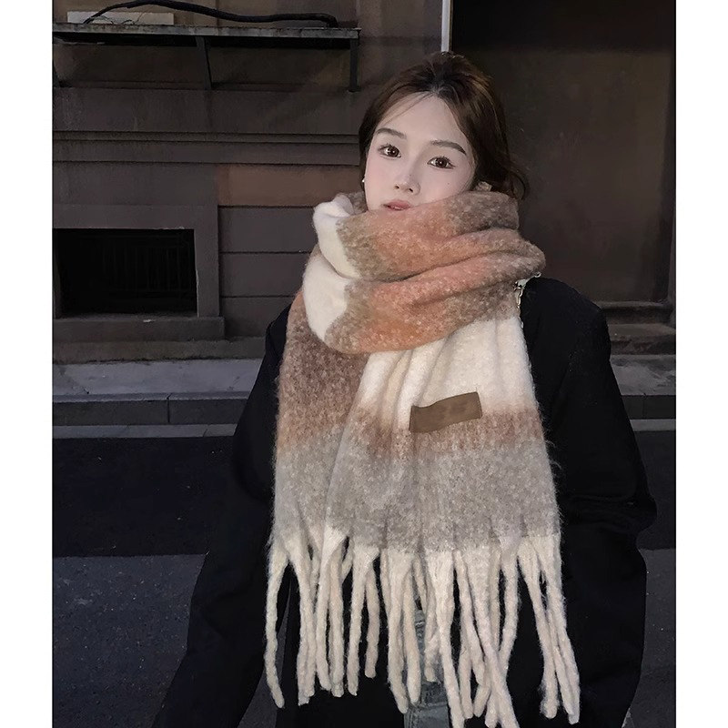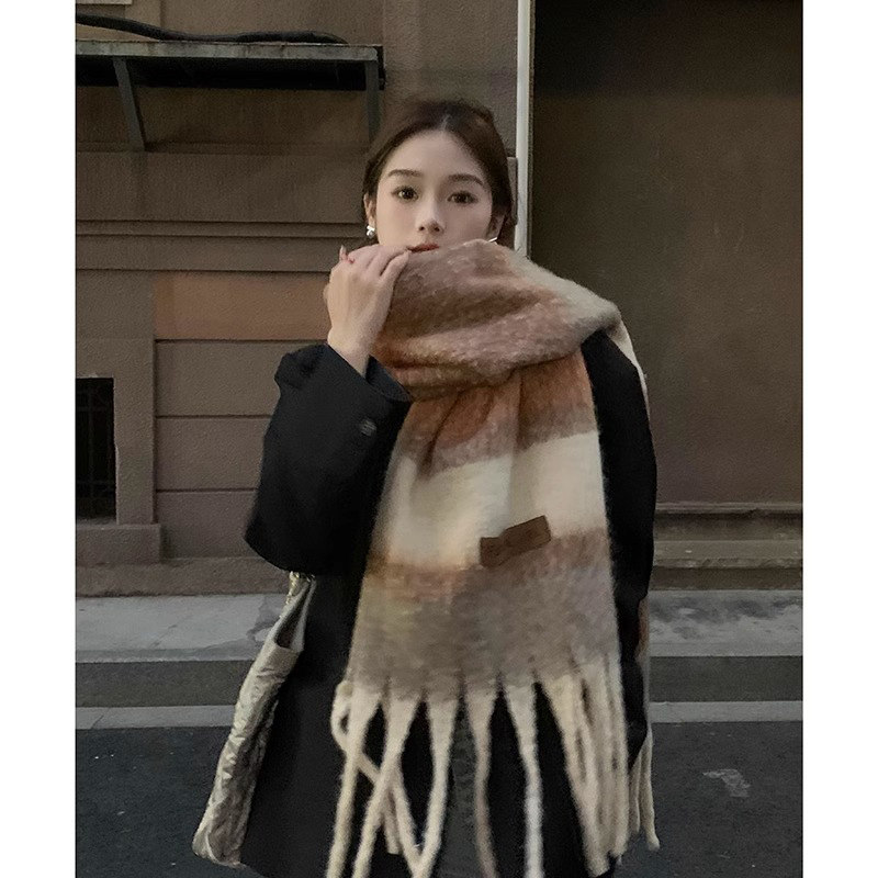 围巾女冬季 2025新款 秋氛围感条纹复古渐变初中生加厚保暖小众围脖
