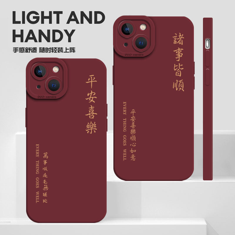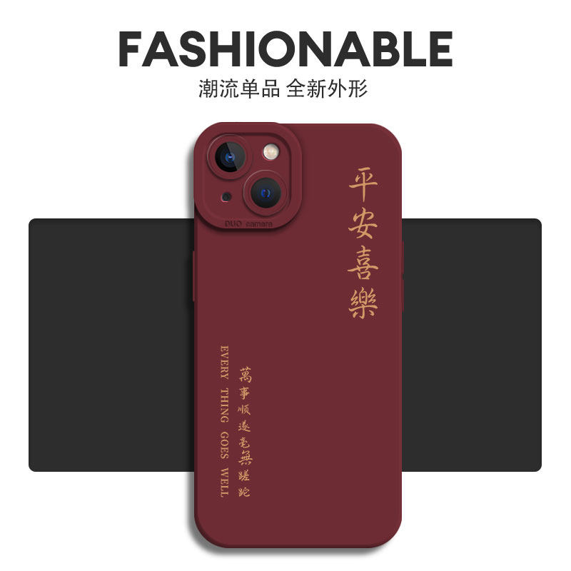 7p男x高级感se2 适用苹果14手机壳iPhone13pro情侣16 12mini中国风11红色xsmax文字xr液态15硅胶8plus新款 3套
