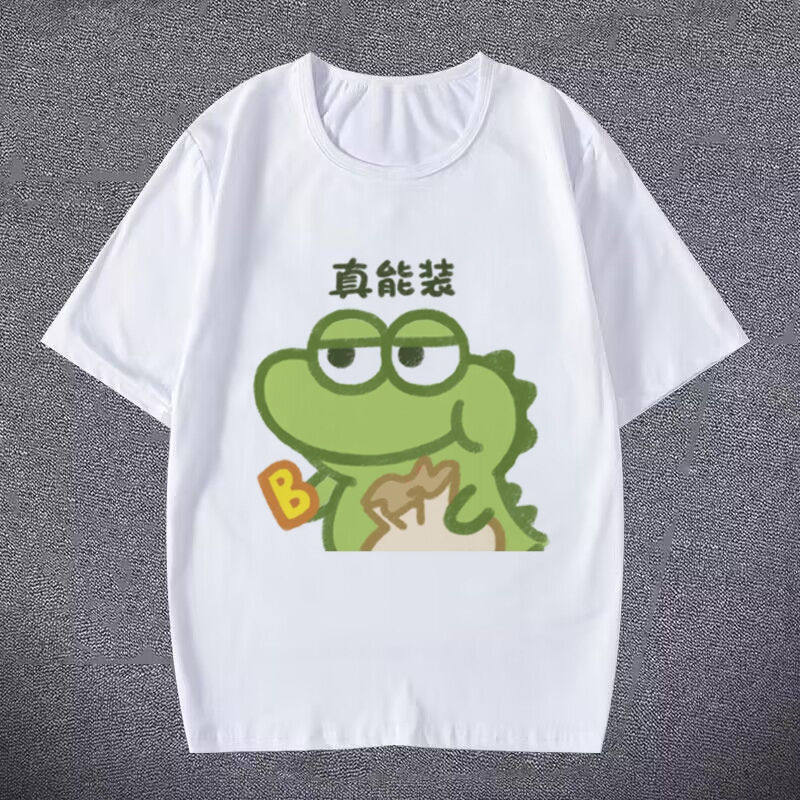 抹茶旦旦干饭人短袖 T恤男女呆萌小鳄鱼表情包学生儿童百搭打底t潮