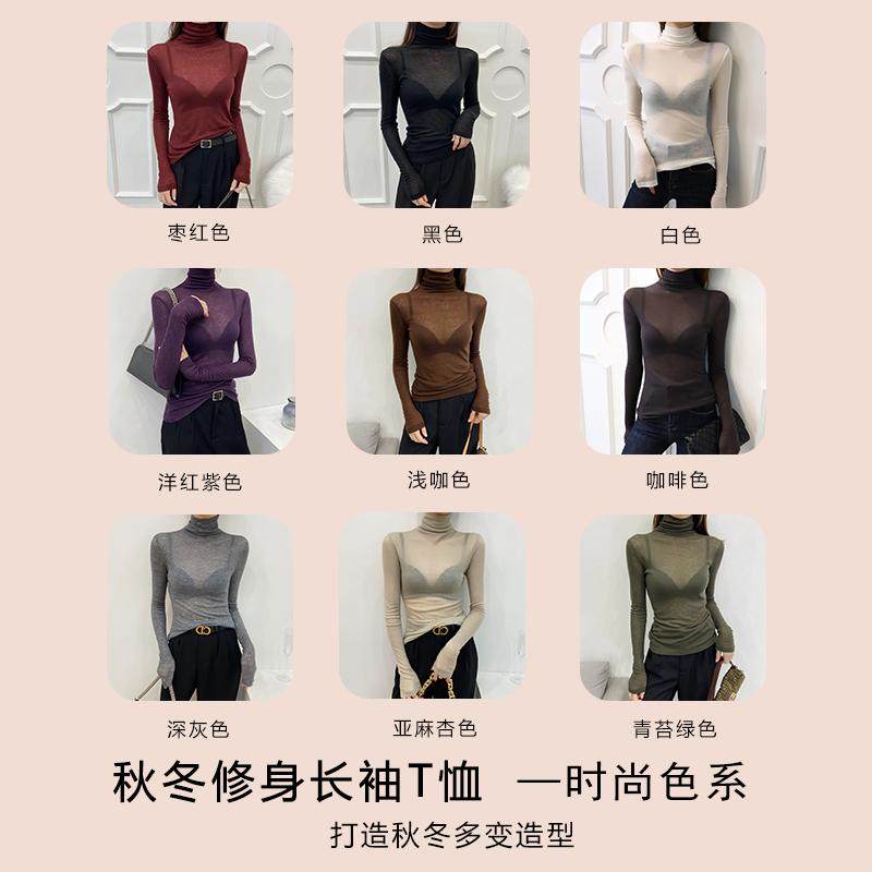 高领绿色打底衫 上衣 微透超好看网纱内搭长袖 女2025新款 高级感薄款