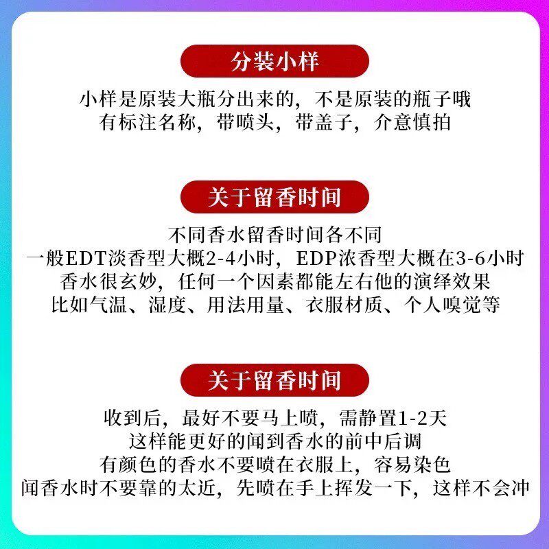 去购买>> 下架了的话点我重新搜索本站来源:淘宝(www.xiuda.net)购物与天猫(www.tianmaocn.com)是一个知名的电商平台,淘宝同时您也可以访问(www.taobao.lc)来发现更多精彩的购物选择天猫(www.tmall.lc)。 jeanmiss玫瑰香水女士正品 官方旗舰店男士 持久淡香白茶花果E3 30元 购物券 YSL自由之水 不羁男士 香水 限时特价 MINISO名创优品香薰膏留香卡片口袋香水 情人节礼物 GUCCI古驰迷你奢华女士香水节日礼盒 谢馥春馥彩名媛香膏固体香水古风体香膏留香男女淡香 16g 未知气味生日蛋糕香水礼盒高级感小众生日礼物女生送闺蜜创意礼物 梅森马丁马吉拉慵懒周末日爵士酒廊航海温暖壁炉抹茶冥想香水小样 TTOUCHME松烟868香水小众檀月檀香2404无界男士 女士木质淡香礼物 U先试用12.9 露迦徒香水小样Q香女士持久留香便携阿那亚限定 免费高定刻字 Dior迪奥旷野男士 经典 淡香氛 木质调礼物约会 回购券 赠40元 会员专享 PRADA普拉达明星香水体验礼香水试用装 u试先用官方天猫u先试用入口u选香水小样正品 大牌女士正装 三件套 情人节礼物 未知气味香气小屋香水礼盒送闺蜜实用生日礼物女生 hfp固体香水礼物秋冬持久淡香清新固体香膏持久留香官方旗舰男女 Heiseey槐序山川系列香水 持久淡香大牌正品 官方旗舰店