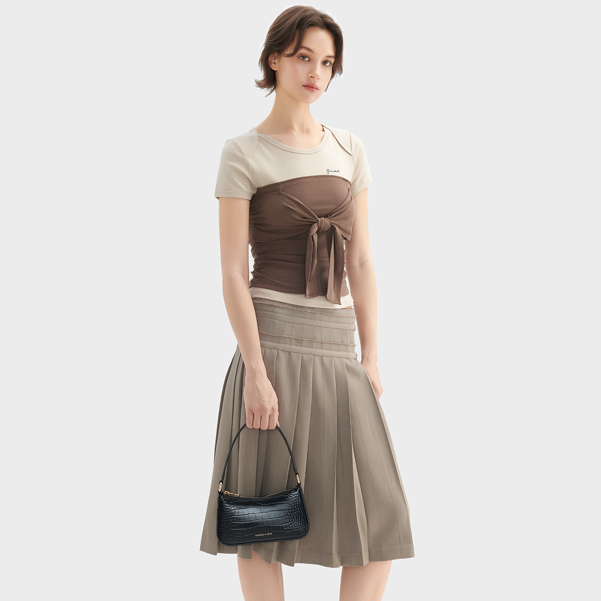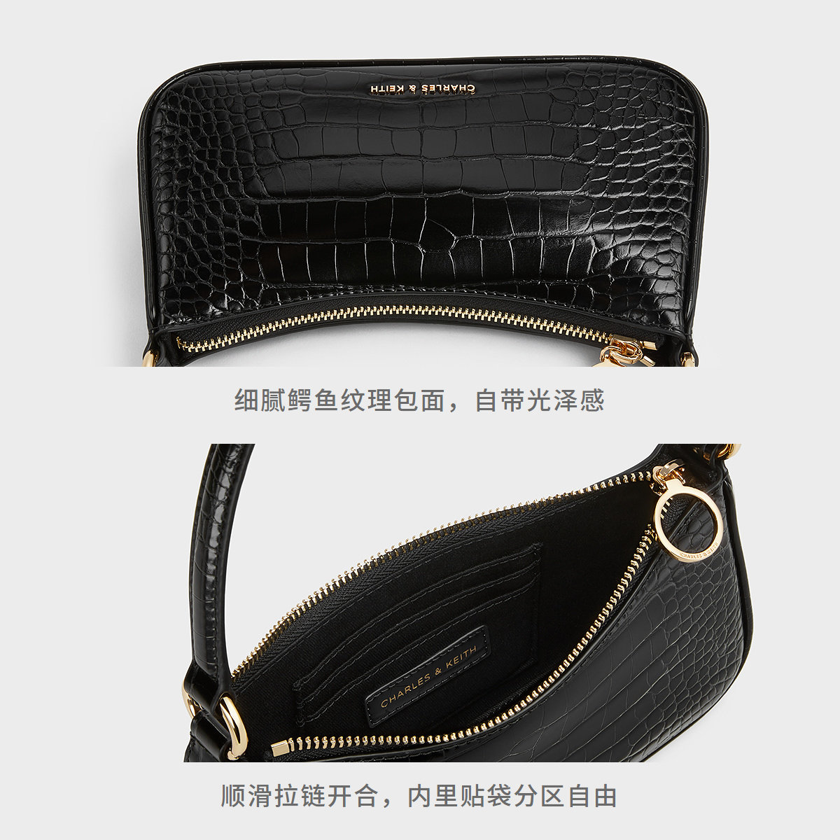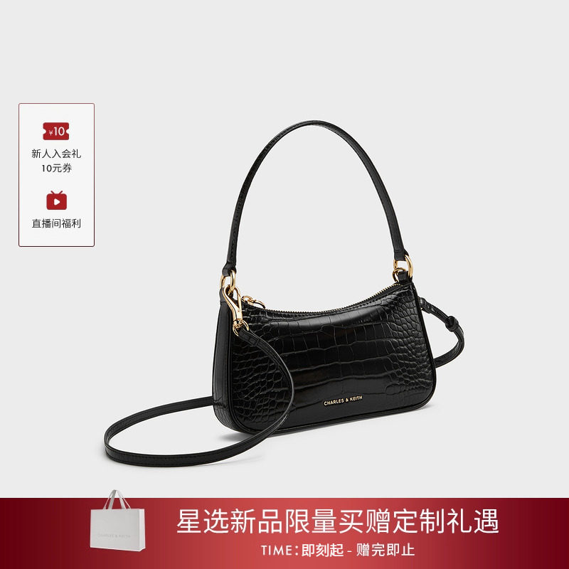 B鳄鱼纹腋下小方包 80151362 情人节礼物 CHARLES&KEITH女包CK2