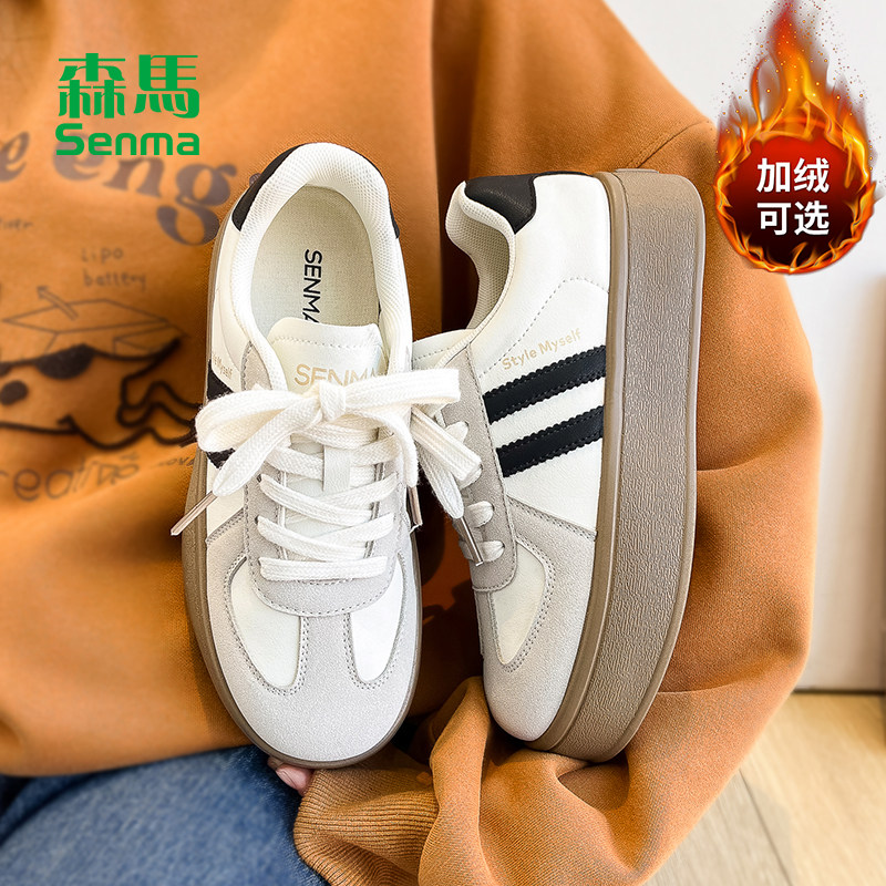 爆款 加绒德训鞋 森马女鞋 冬季 2026新款 子女款 厚底板鞋 休闲鞋 二棉鞋