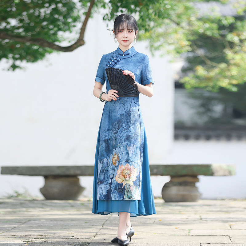 新款 连衣裙修身 显瘦复古时尚 如意风改良旗袍夏季 新中式 裙子24J016