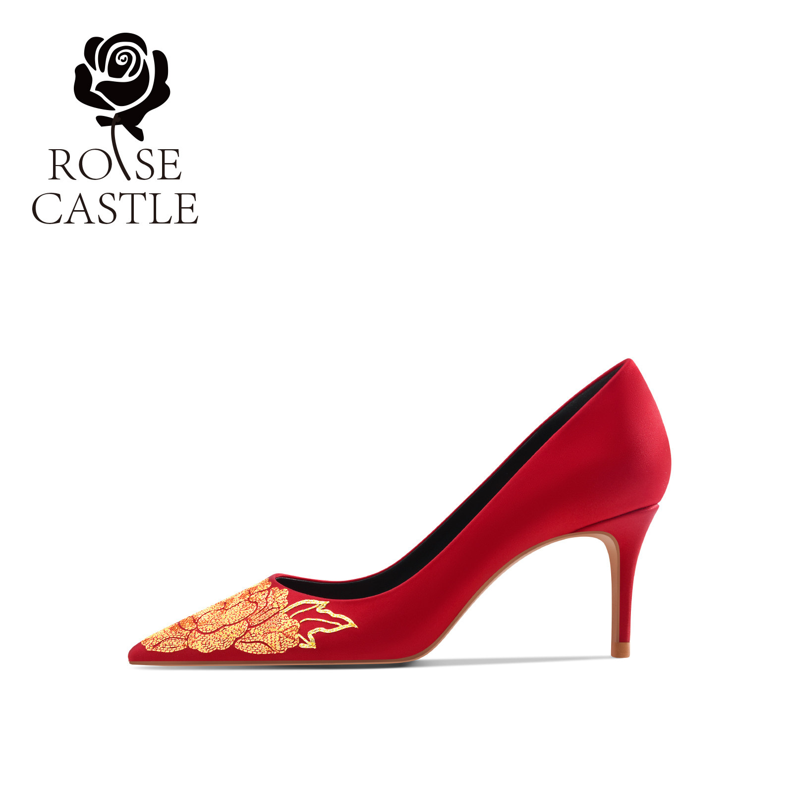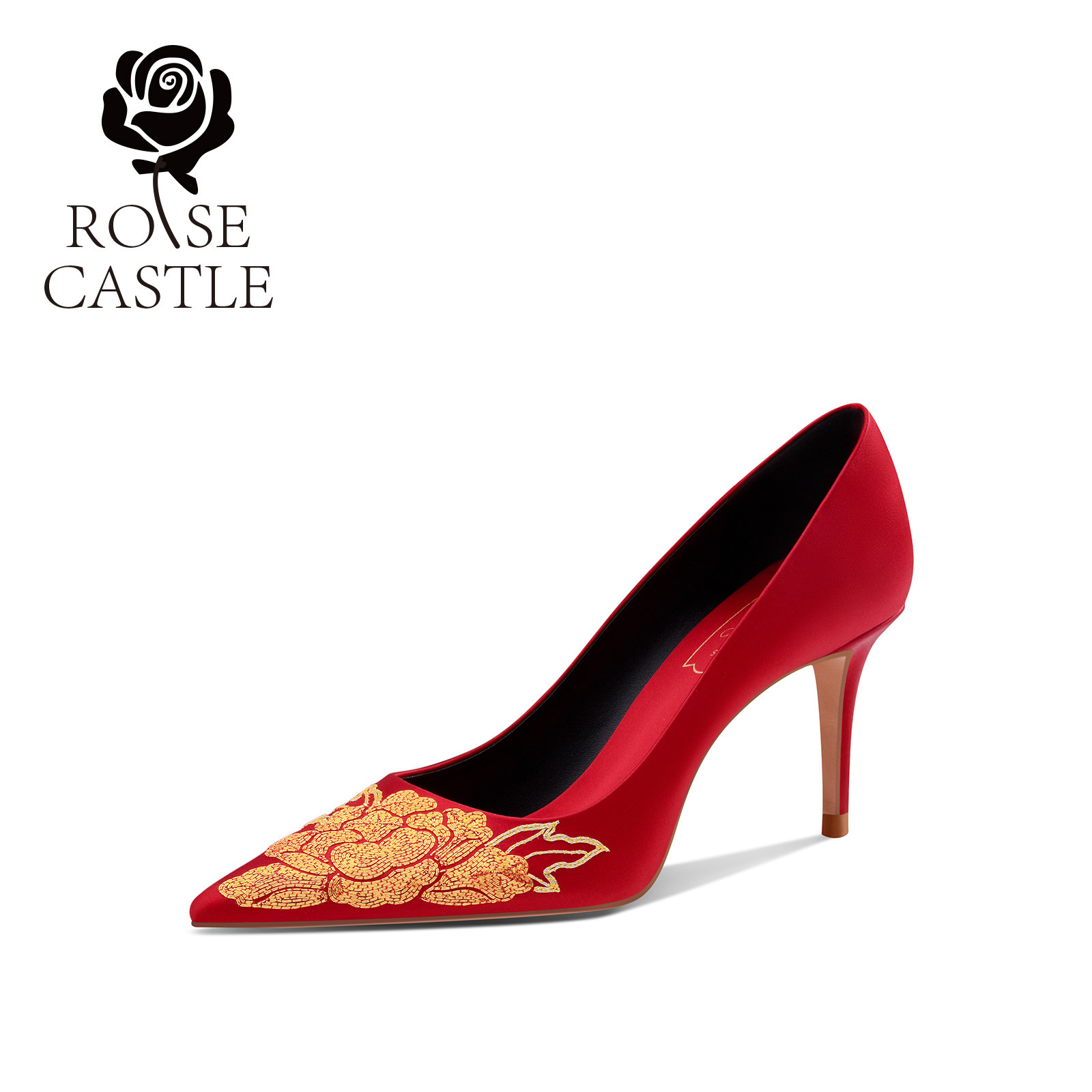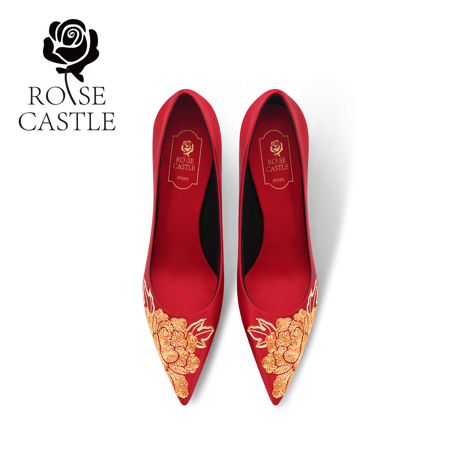 原创手工刺绣高跟鞋 花开富贵rose 国风婚鞋 女新娘鞋 castle 新中式