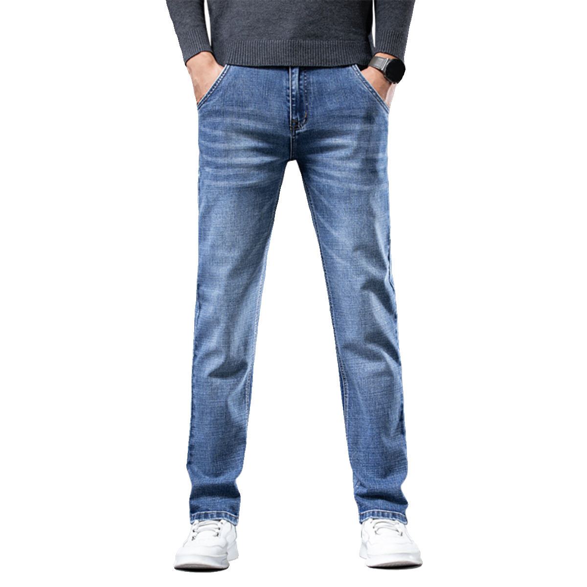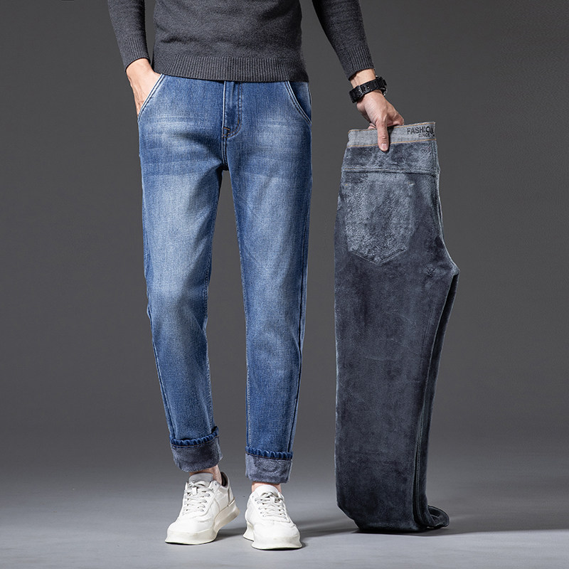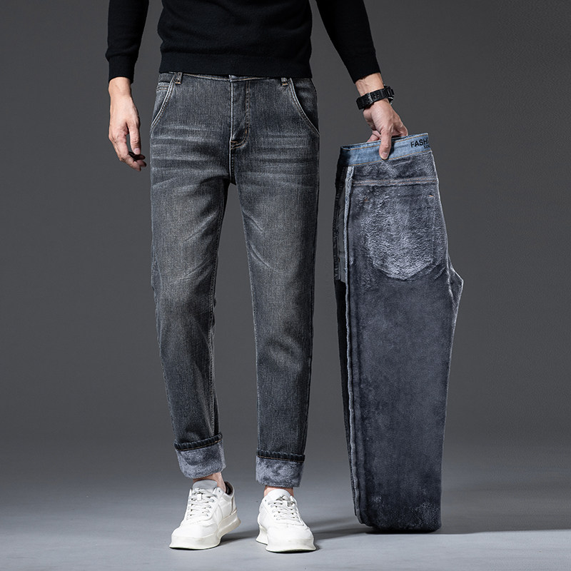 香港高端直筒牛仔裤 子 加绒加厚潮牌弹力休闲长裤 男士 2023秋冬新款