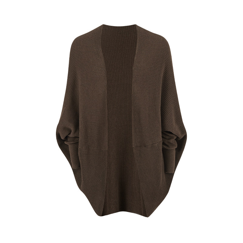 MosesQueen魔西女王咖色针织开衫 毛衣外套外搭宽松披肩蝙蝠袖 上衣