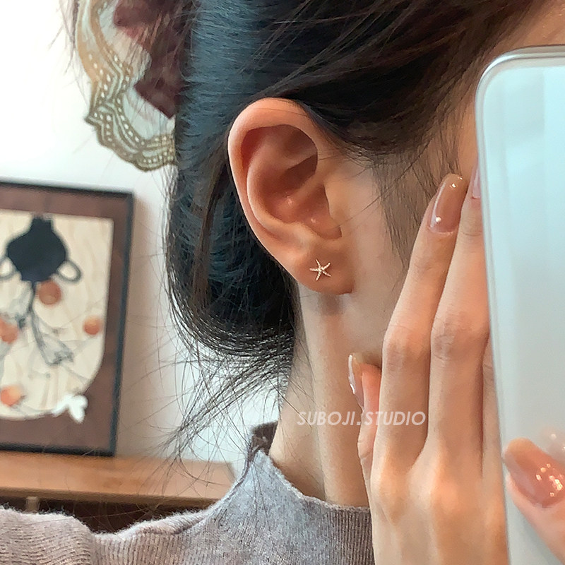素泊集s999纯银海星耳钉女设计感小众耳环高级耳饰养耳洞睡觉免摘