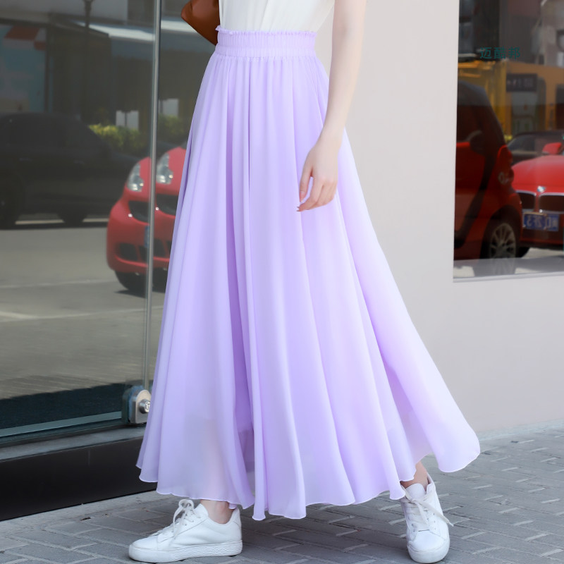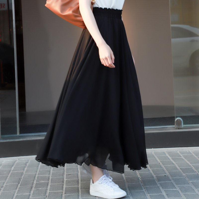 a字裙小个子长款 百搭雪纺裙子半身裙女2024新款 夏季 显瘦半身长裙