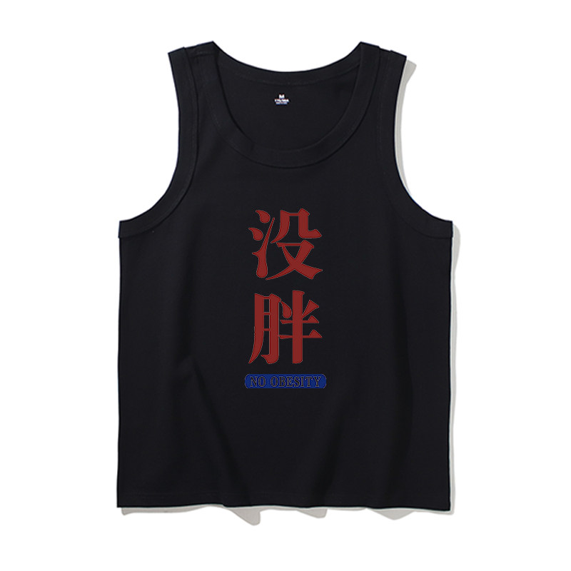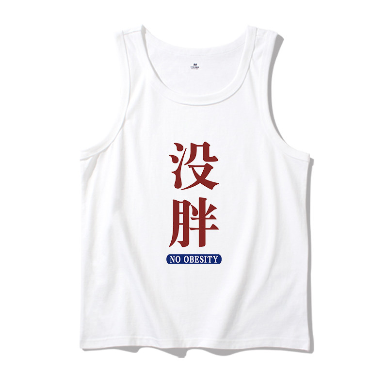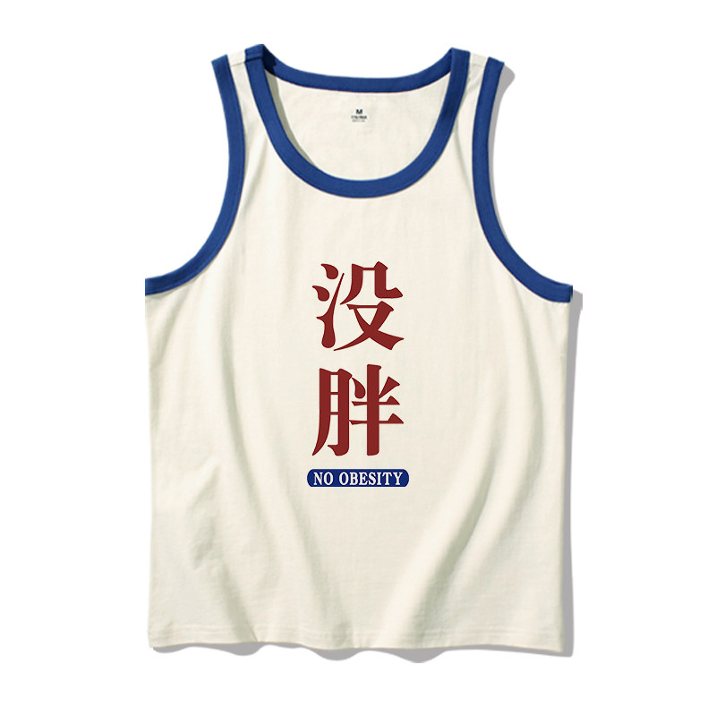 纯棉无袖 没胖 夏季 背心男青少年趣味文字复古怀旧彩边t恤坎肩t恤