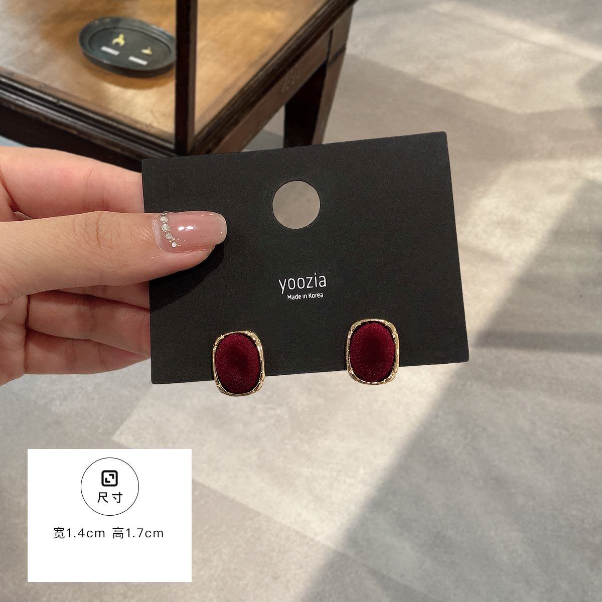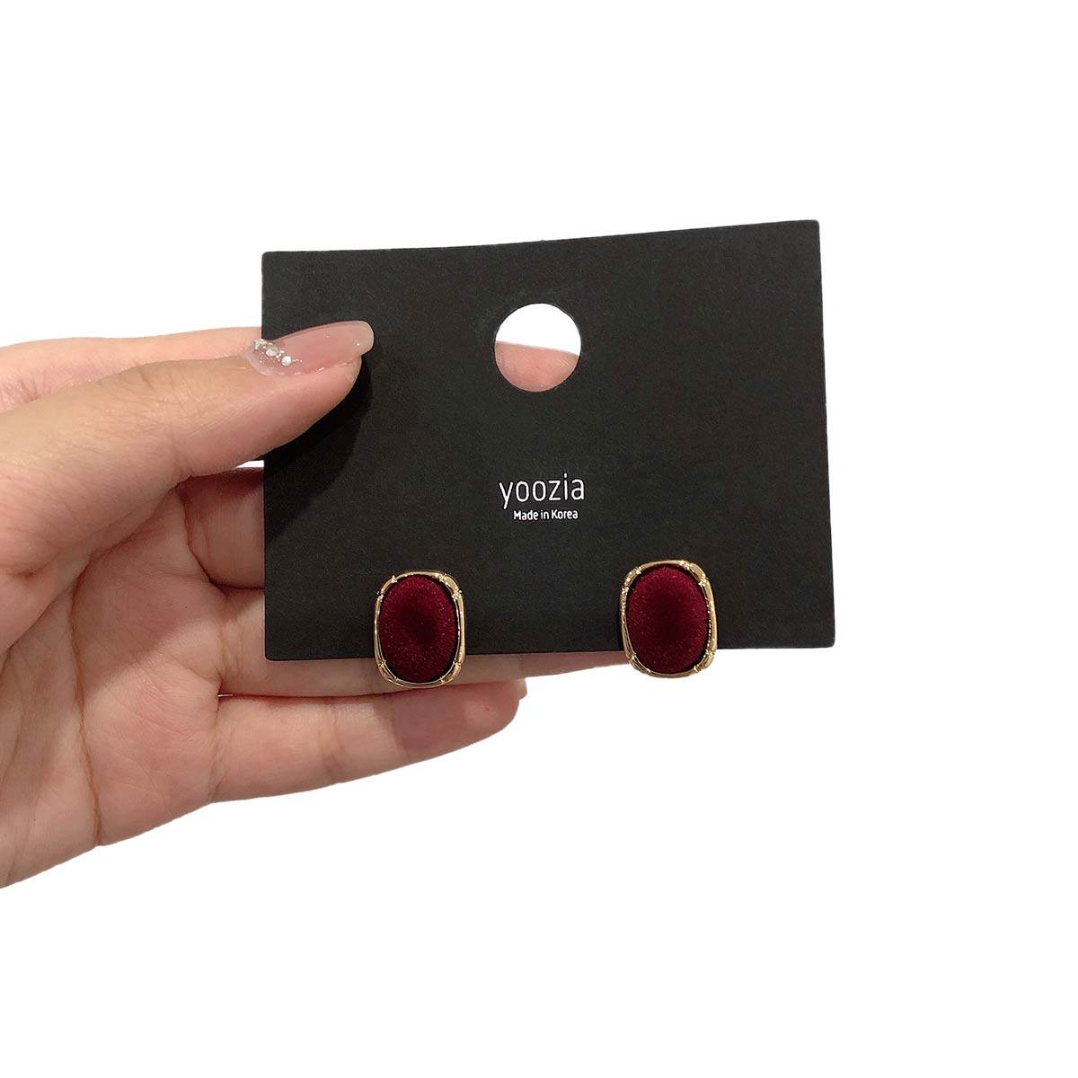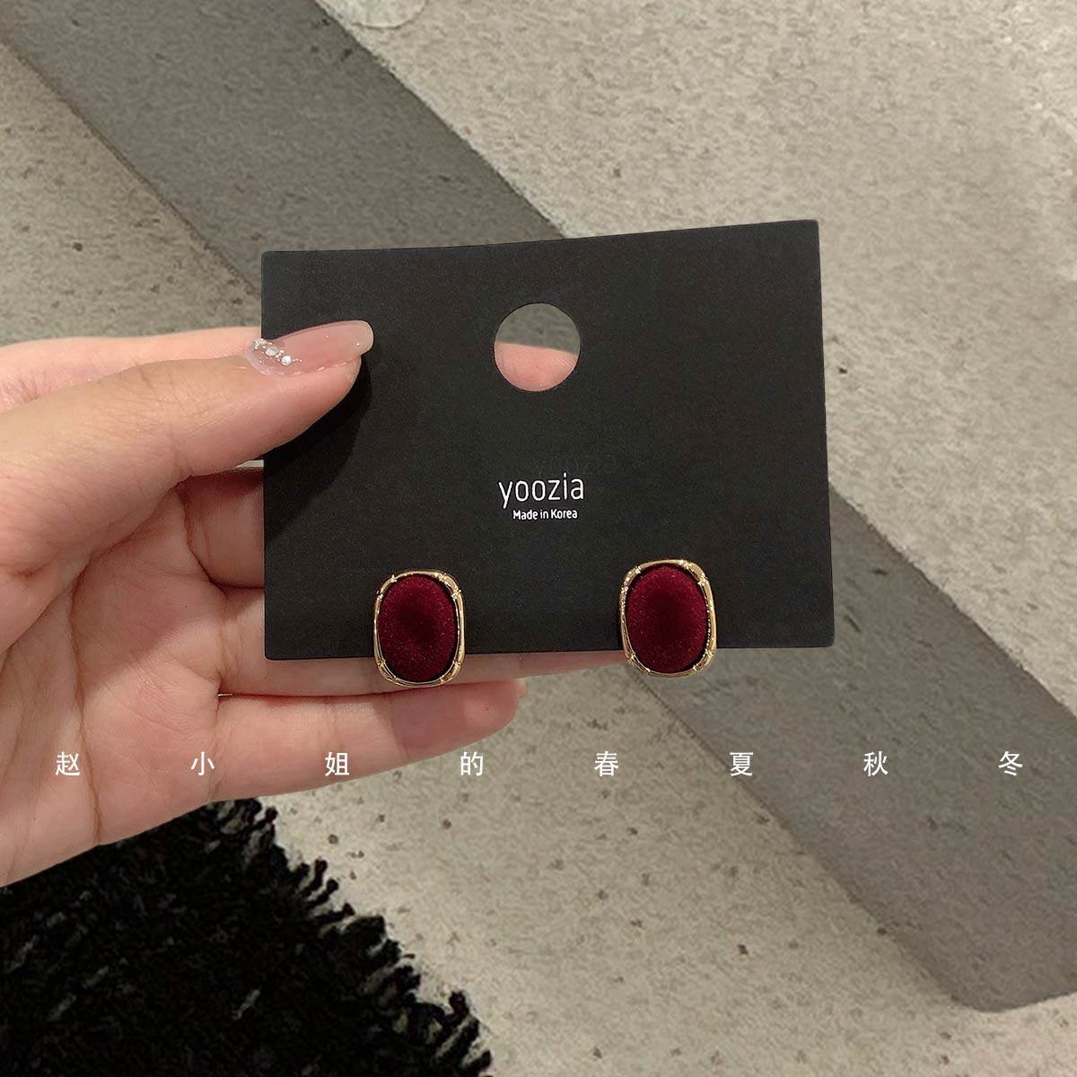 2025秋冬新款 韩国饰品高级感复古耳饰耳环气质港风红色丝绒耳钉