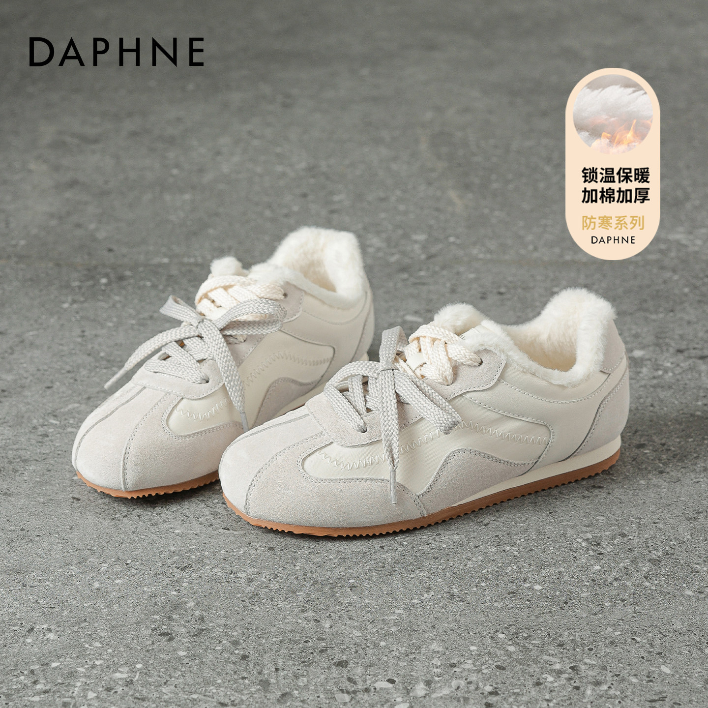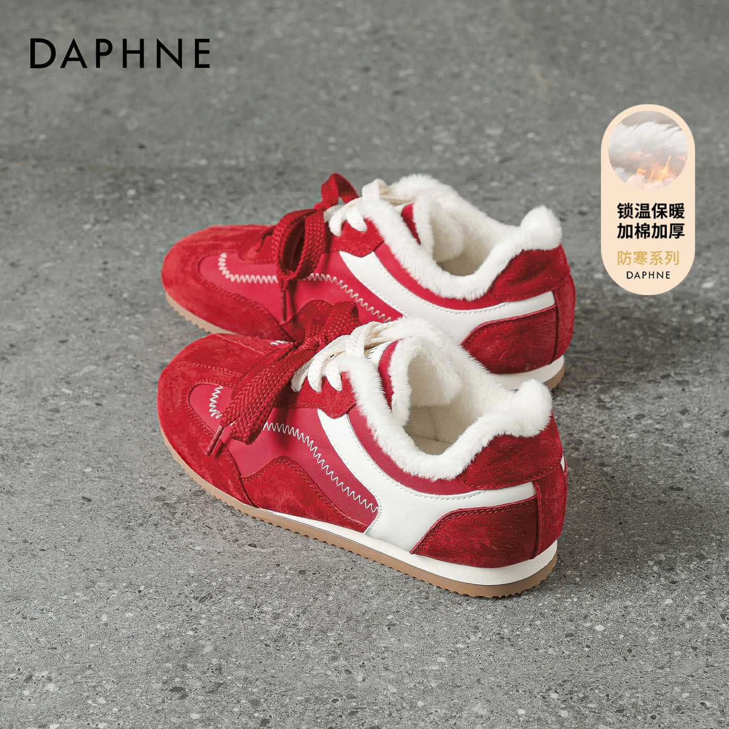 达芙妮红色德训鞋 保暖雪地靴 阿运动甘新年加绒棉鞋 女2025冬季 新款