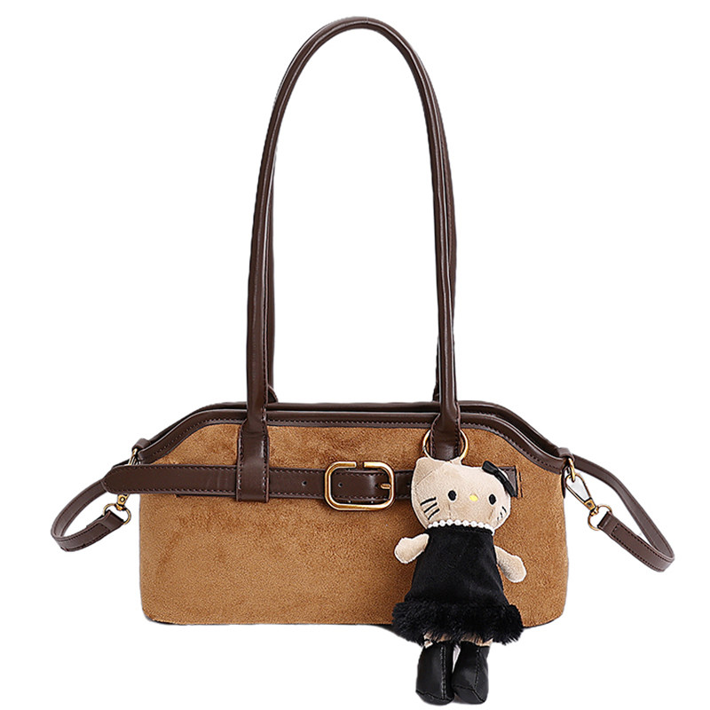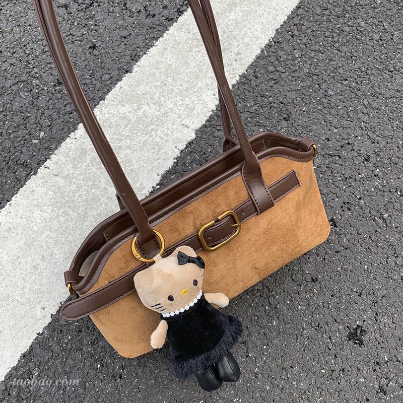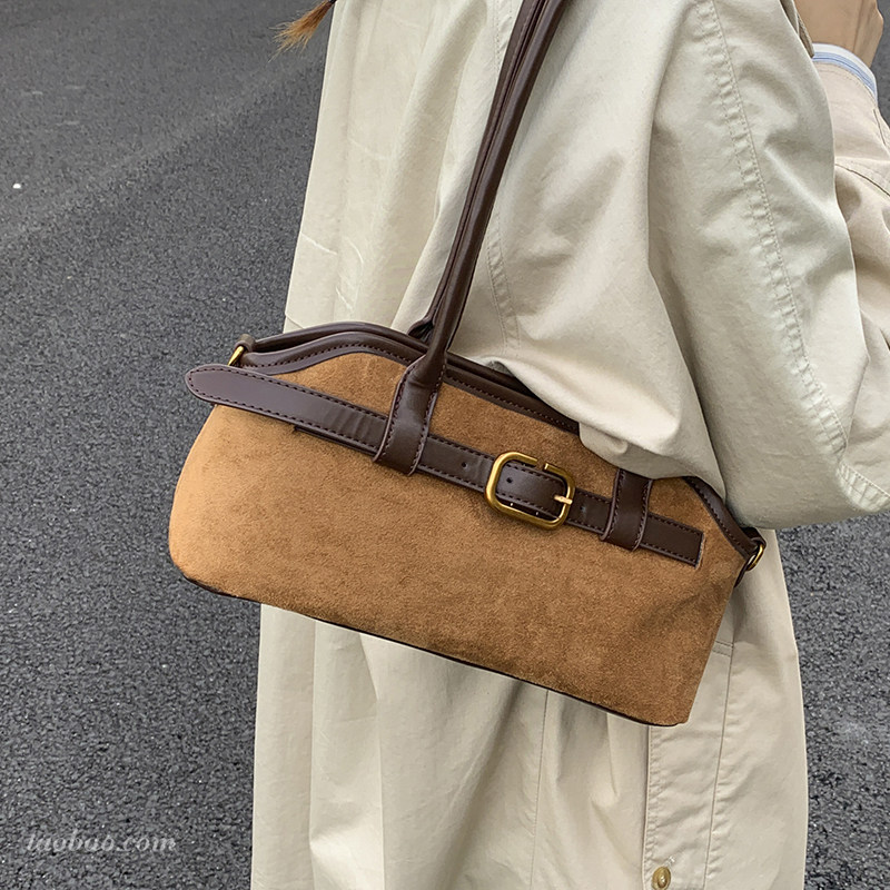 复古小众麂皮绒包包女2025新款 斜挎包秋冬季 百搭单肩腋下包法棍包