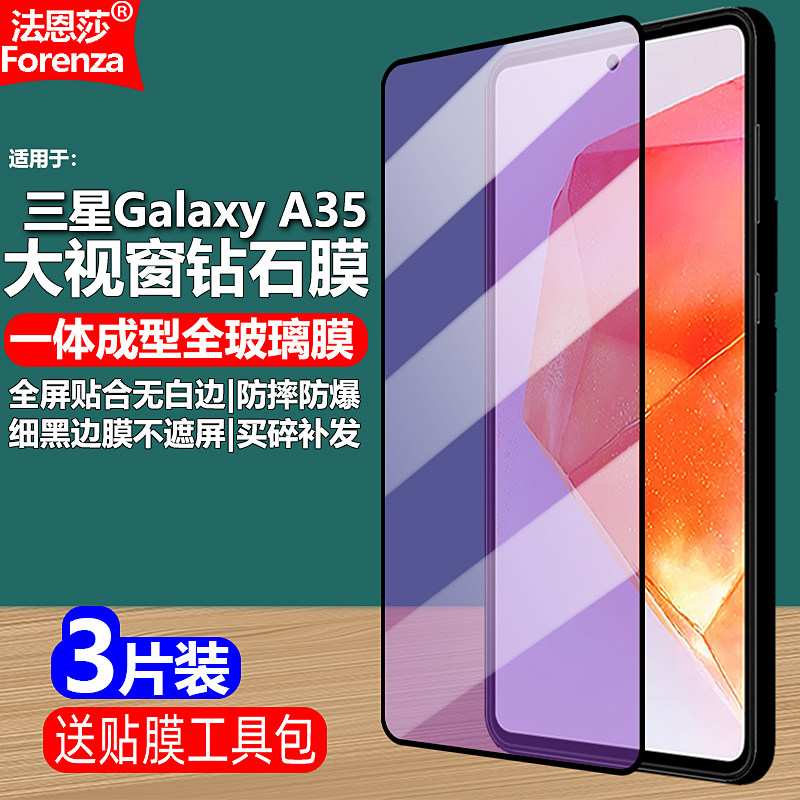 N全屏大视窗无白边手机钻石膜高清护眼防摔爆屏保 A3560 A35 适用三星Galaxy 5G黑边钢化膜SM A356E