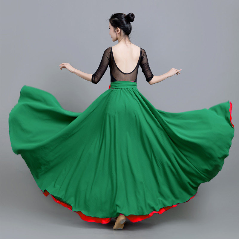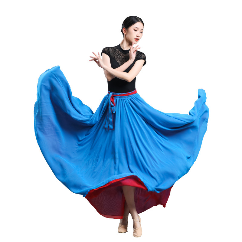 720度新疆舞蹈裙两面穿雪纺半身裙纱裙摩登舞广场舞大摆垂感长裙