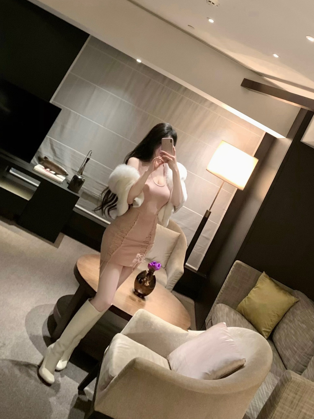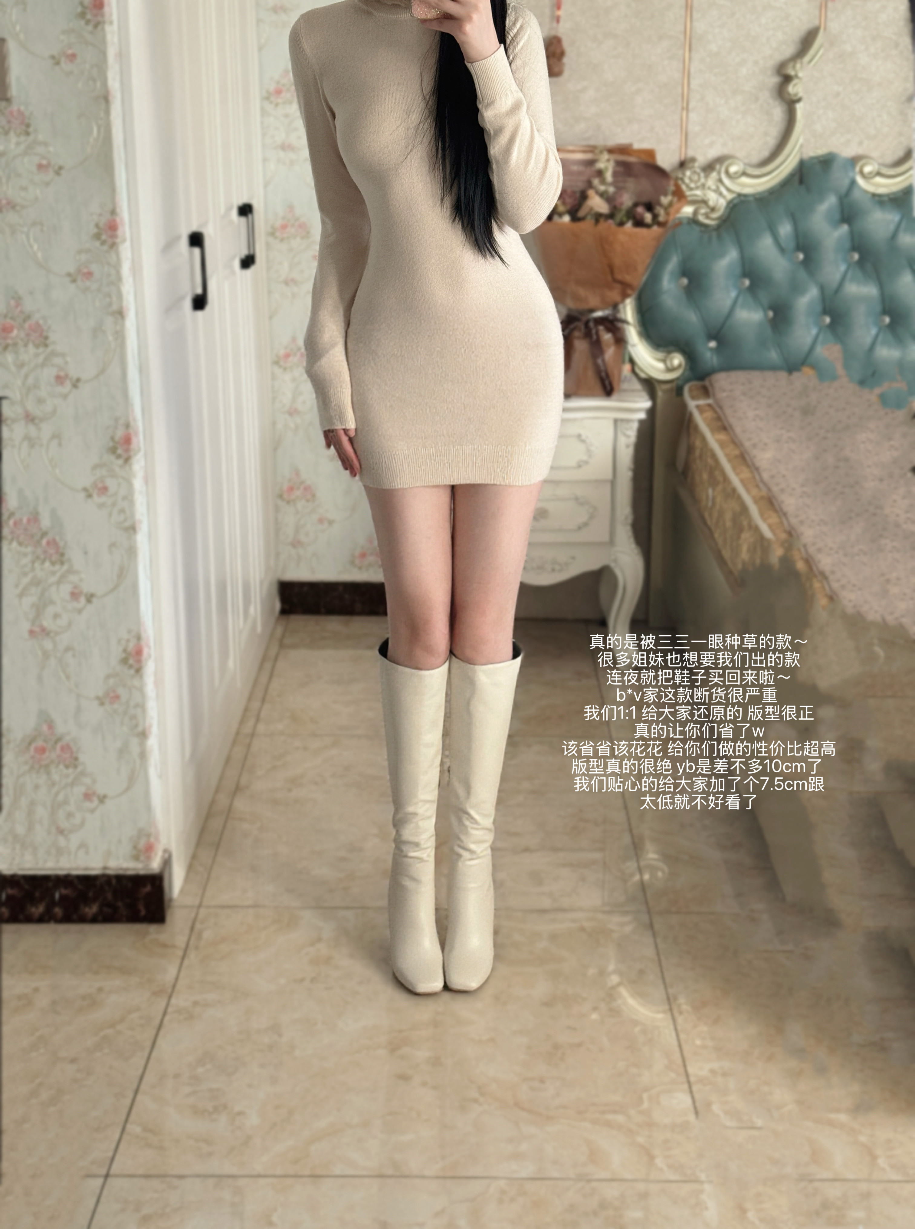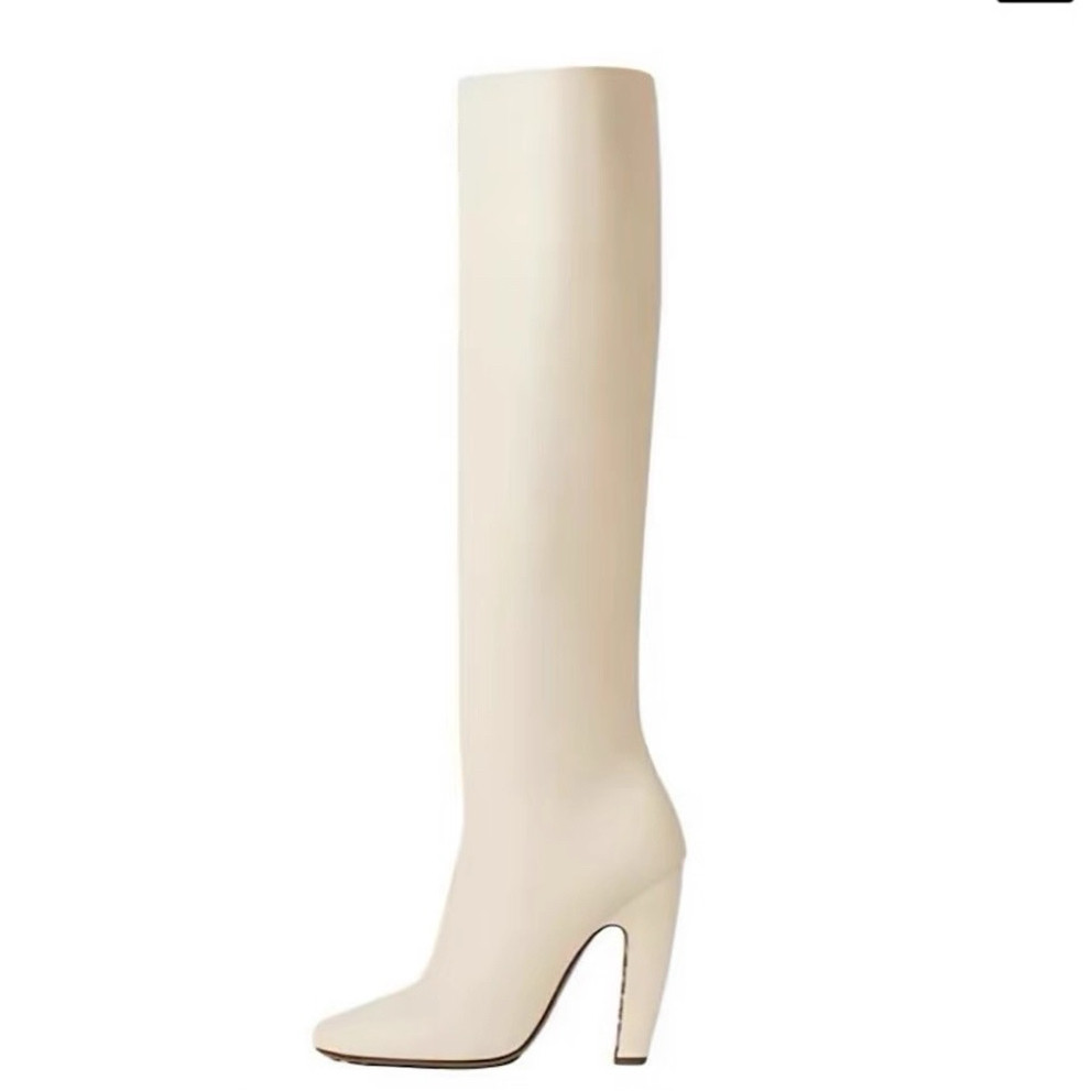韩系白色高跟长筒靴圆头显瘦气质粗跟时装 lady ww三三同款 靴子女