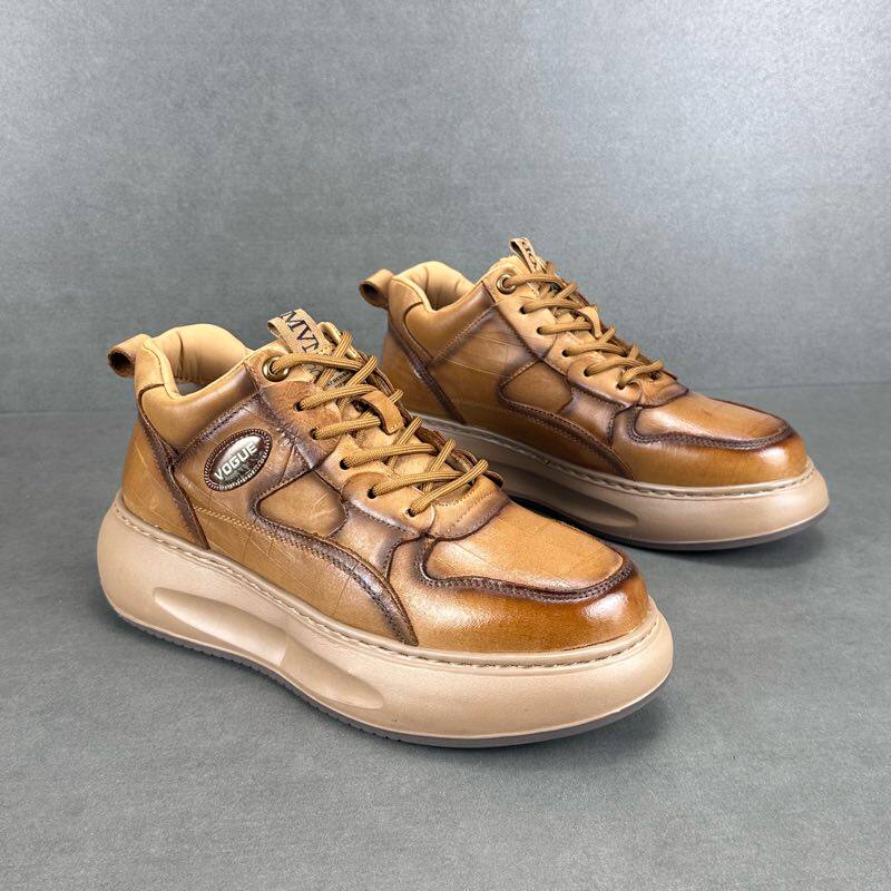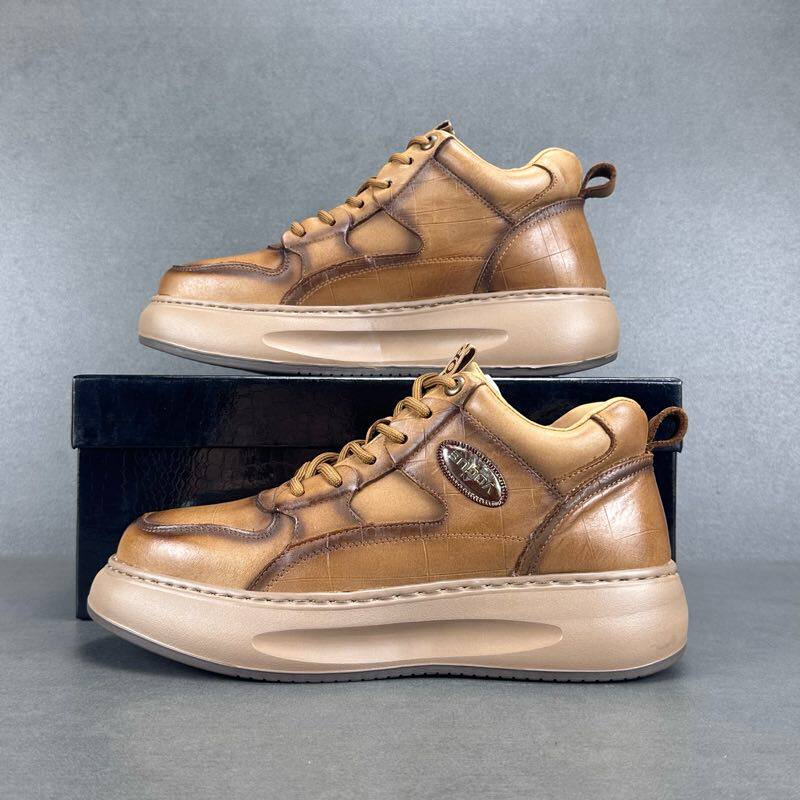 捡漏男鞋 清仓头层牛皮休闲鞋 真皮透气百搭软底板鞋 尾货特价 中帮鞋