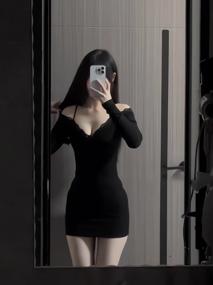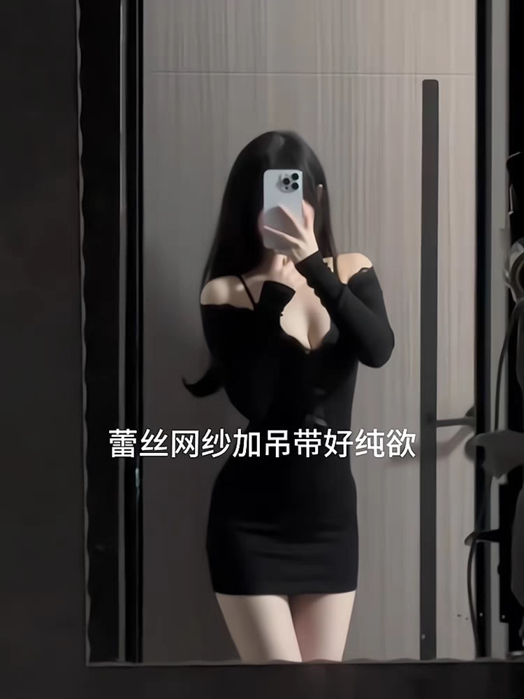 纯欲性感蕾丝长袖 掐腰包臀短裙子 小众设计感修身 连衣裙女秋季 新款
