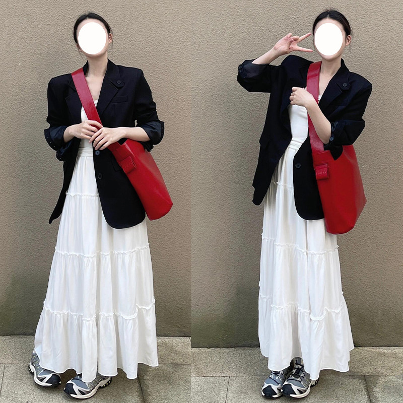 白色蛋糕裙女春秋冬2026新款 高腰显瘦小个子垂感a字中长款 半身裙