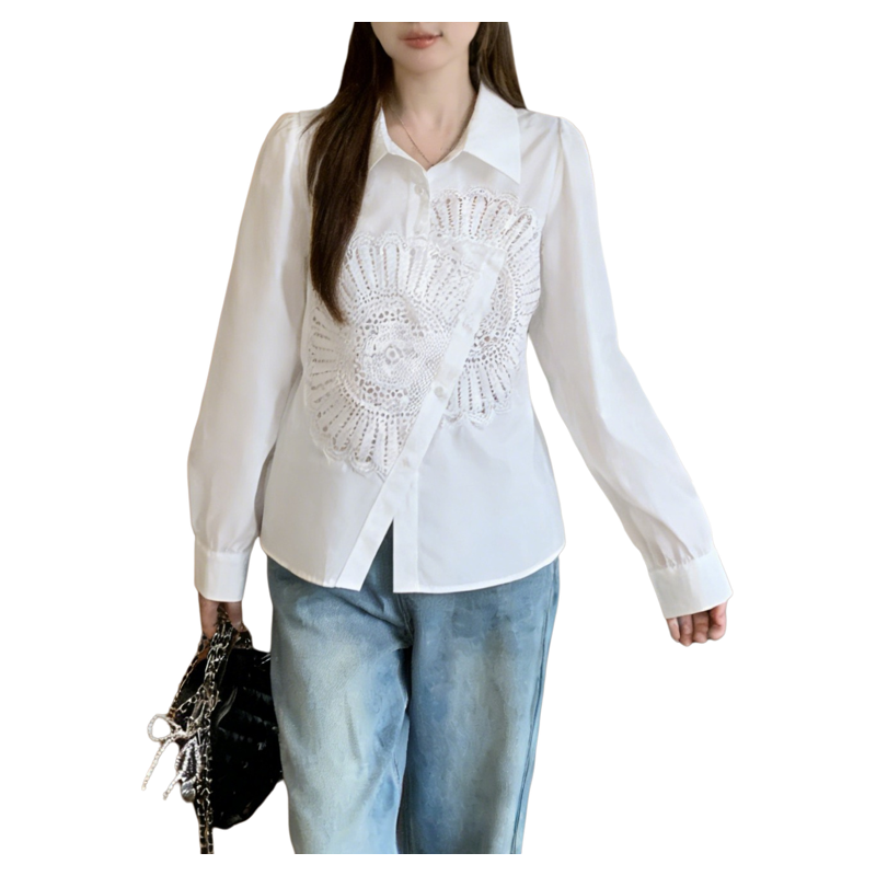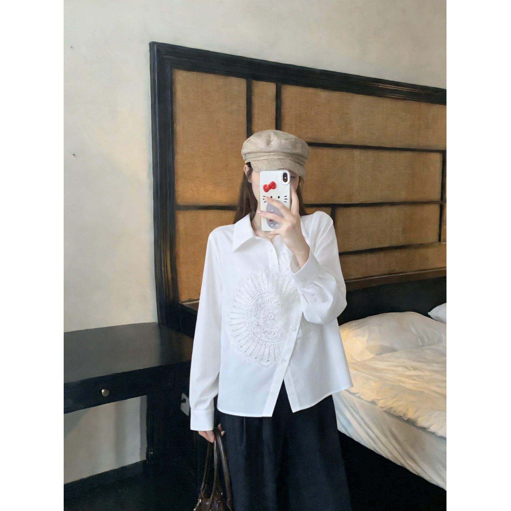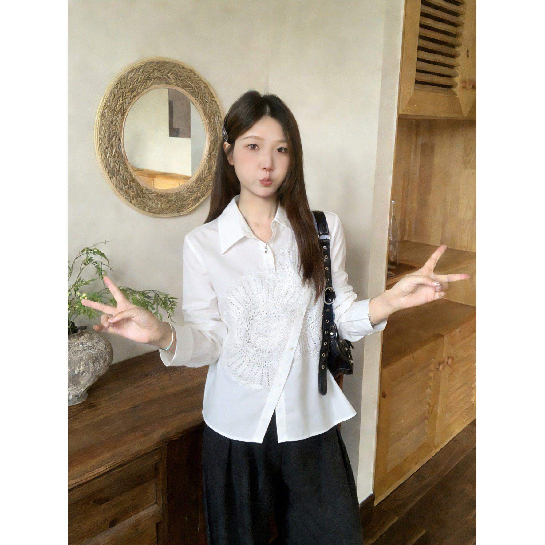 上衣女大码 外套衬衣长袖 胖mm遮肚子2026春秋宽松时尚 文艺刺绣衬衫