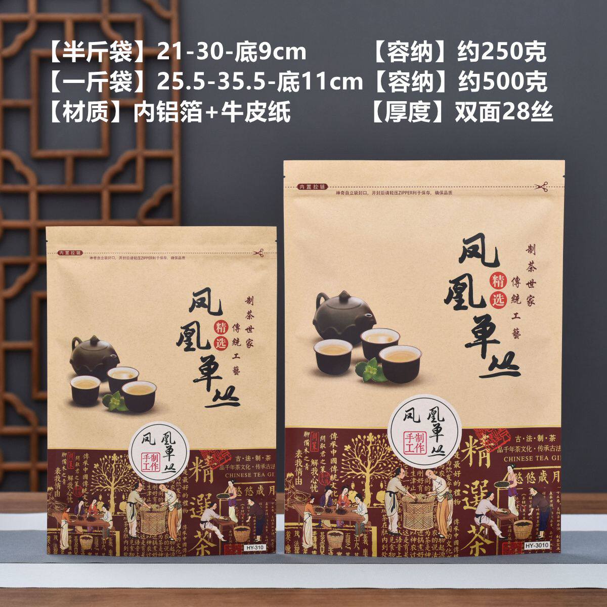 凤凰单丛装 半斤一斤包装 袋牛皮纸袋防潮铝箔茶叶自封袋子拉链密封