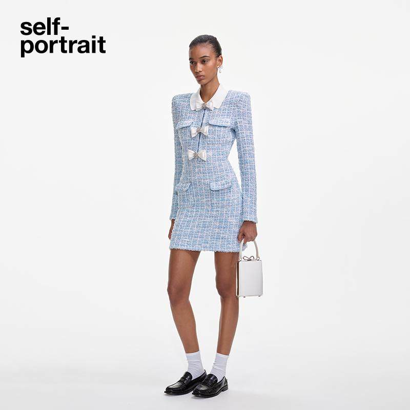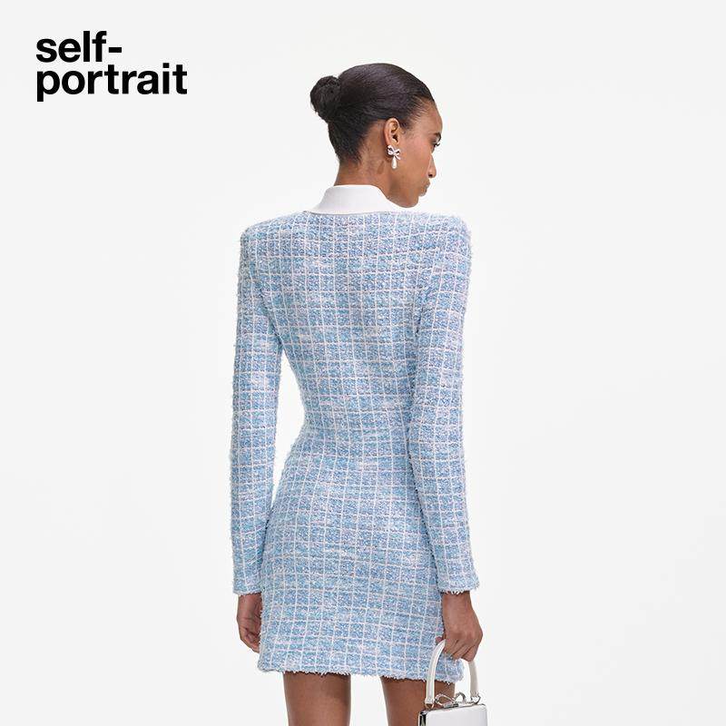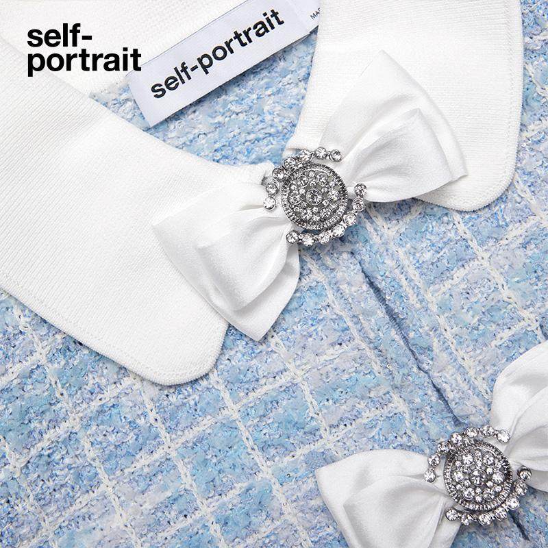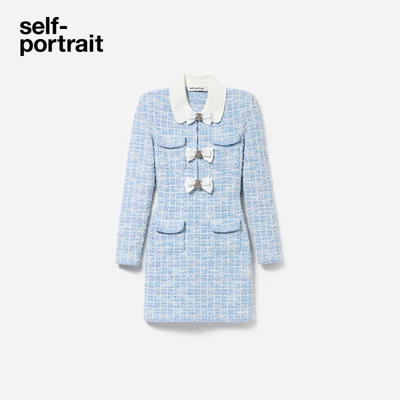 self portrait 2025春夏蓝混色娃娃领小香风蝴蝶结针织连衣裙