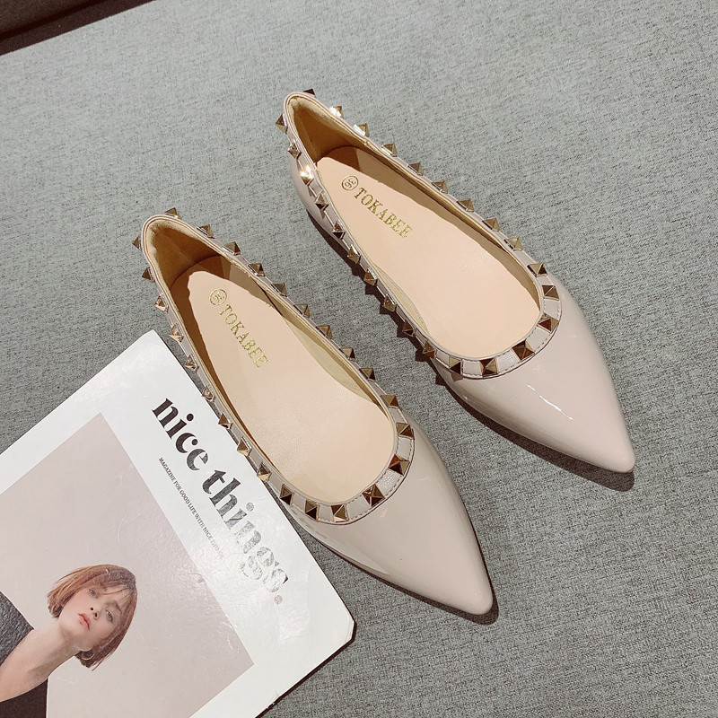 韩版 气质铆钉装 饰显瘦浅口尖头平底单鞋 2025年新款 舒适百搭软底鞋