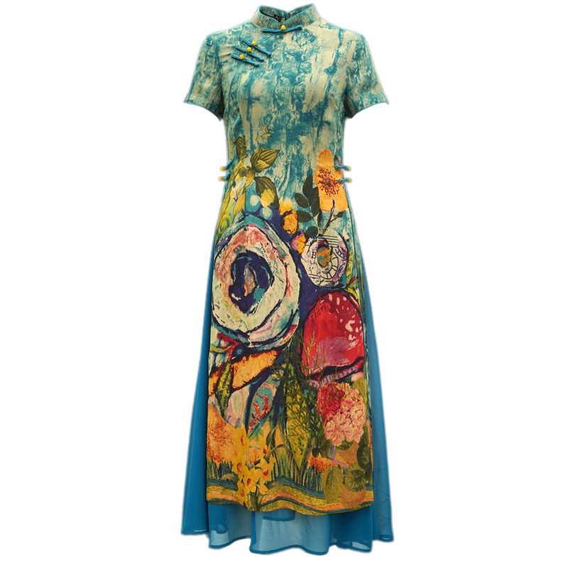 如意风改良旗袍奥黛连衣裙夏日新款 显瘦女装 中国风宴会时尚 长款