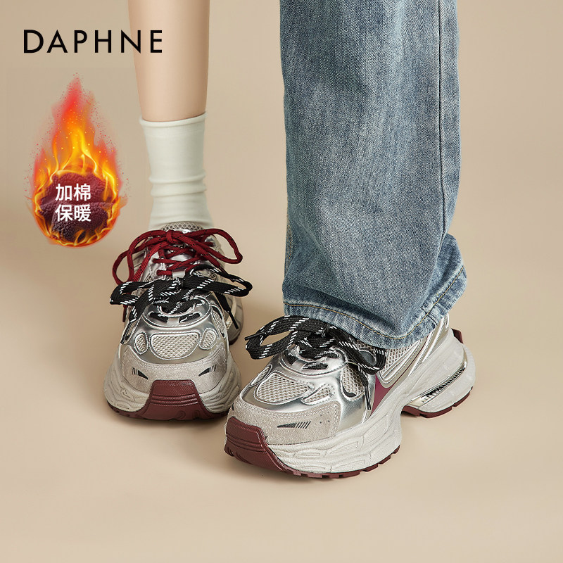 女休闲鞋 子2026春季 新款 达芙妮厚底银色老爹鞋 轻便增高百搭运动鞋