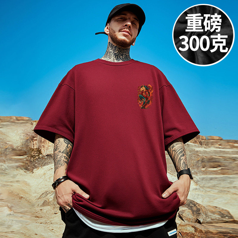红色纯棉过马年本命年半袖 300g重磅2026新年短袖 t恤胖子大码 衣服