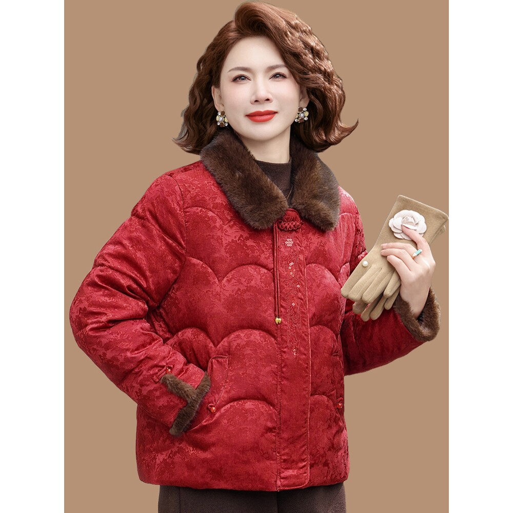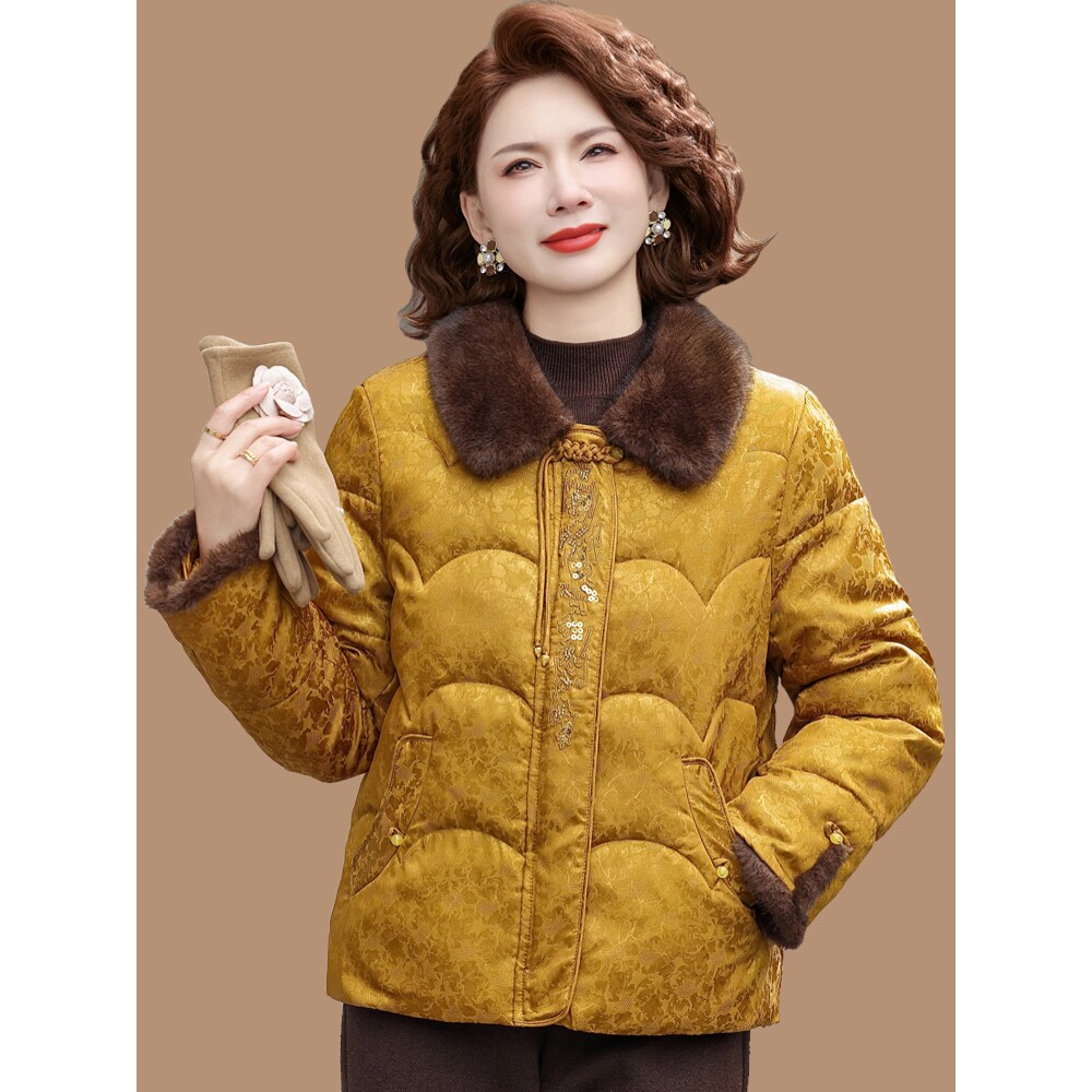 羽绒棉服新款 恒源祥新中式 妈妈冬装 中老年人国风保暖棉衣外套女短